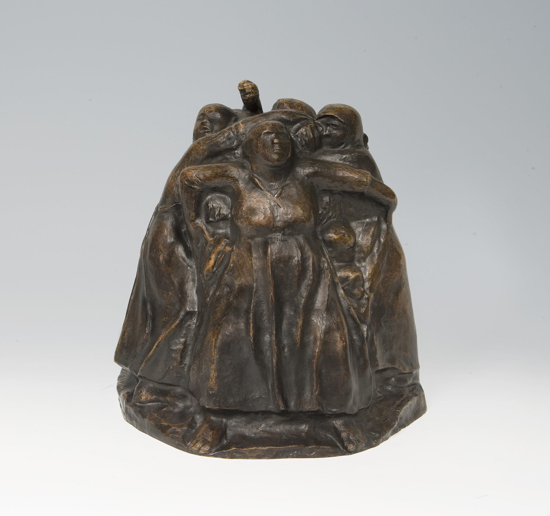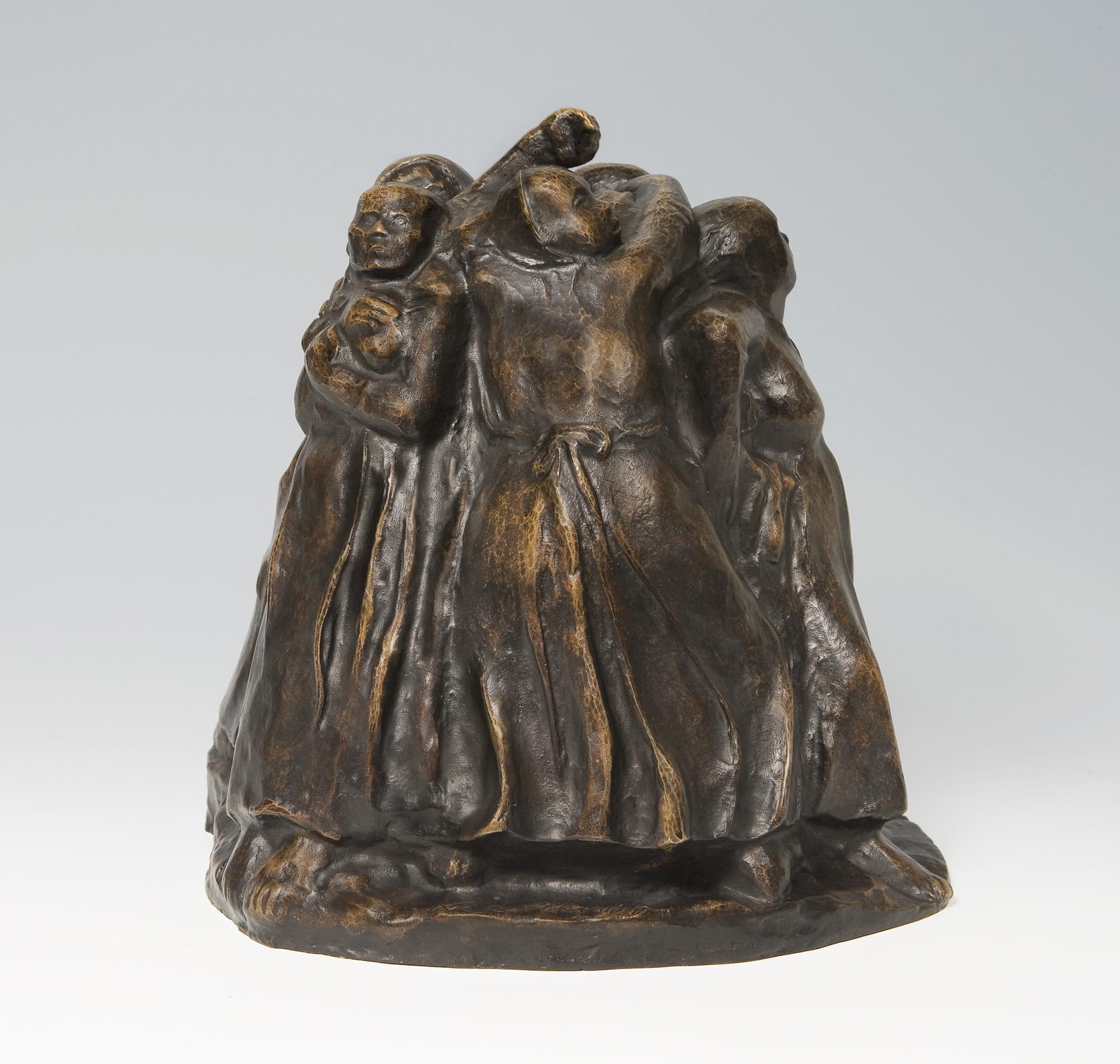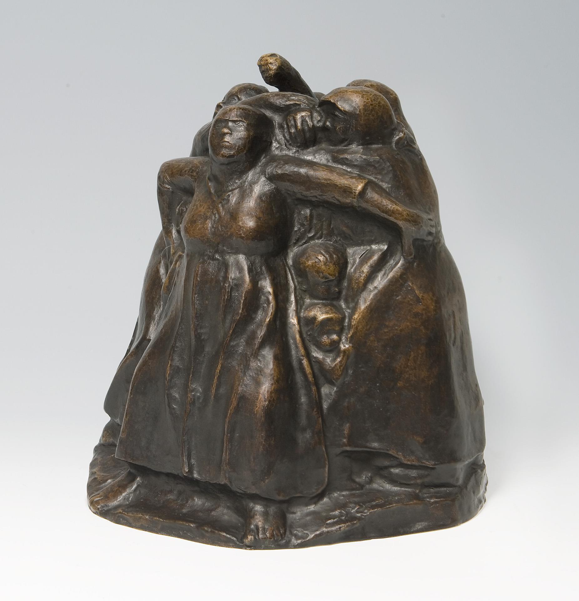 Model year: 1938, signed on the side, foundry mark: H. Noack Berlin. The mothers standing in a circle defending their children are modelled as a round sculpture with a clear front view from which the mothers' postures are fully visible * Frau Dr. Annette Seeler, author of the catalog raisonné of Käthe Kollwitz' sculptures, confirmed after examining the original object and measuring the bronze cast described here herself that, in her opinion, it is an authorized posthumous reproduction of the model "Tower of Mothers", which Käthe Kollwitz created in 1937/38. The copy will probably be included in the next update of the catalog raisonné under the reproductions of group III.B as a copy of the model that was probably used in the picture foundry Hermann Noack, Berlin, at the end of the 1960s. .
