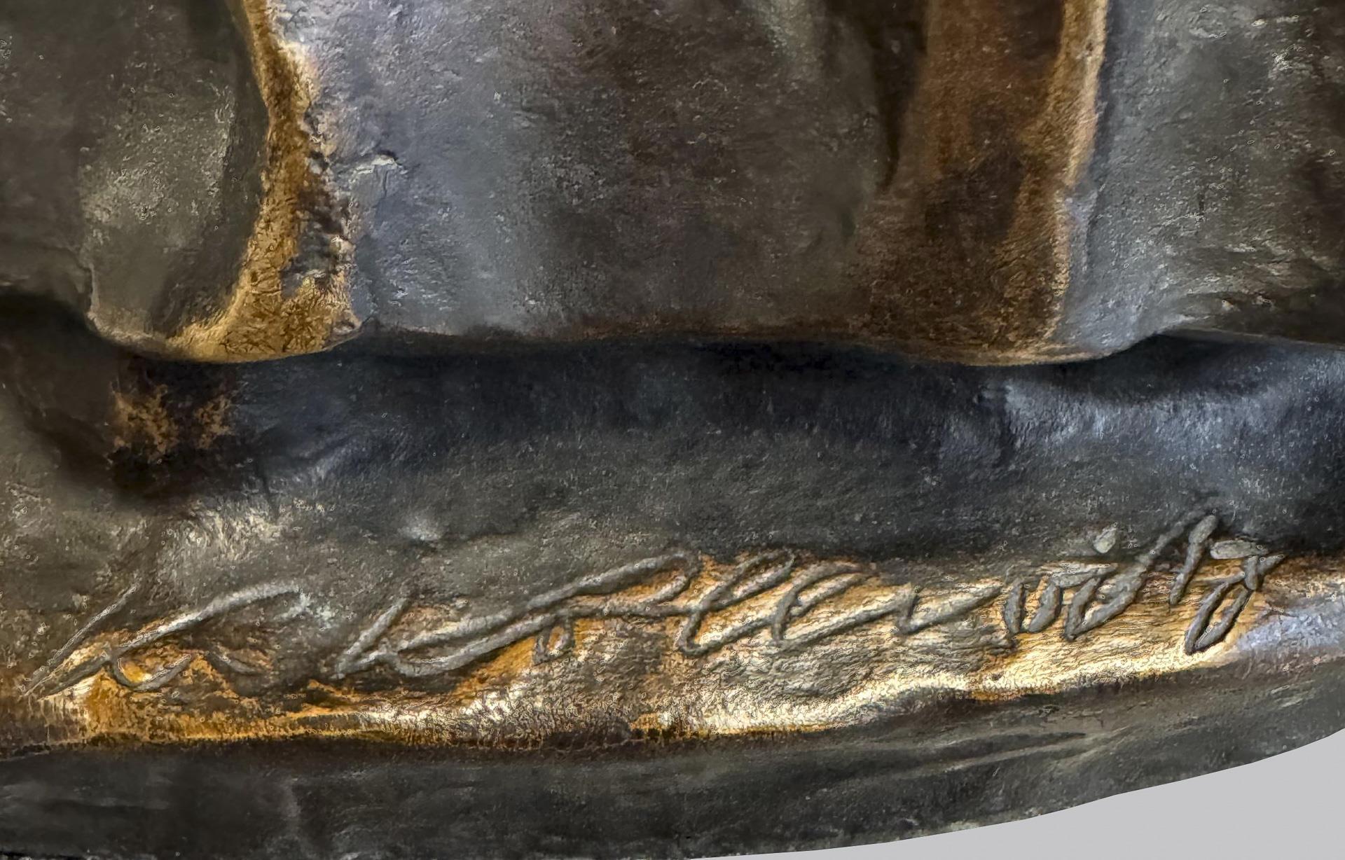 Bronze, dark brown patina, with reddish highlights. Height: 28 cm. 10.7 kg.