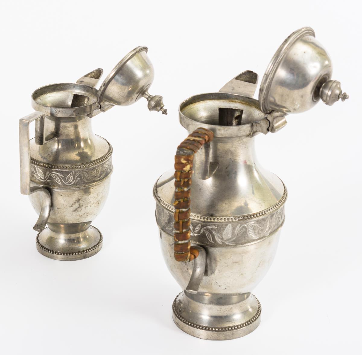 Schüssel und größere Kanne mit stärkeren Alters-/Gebrauchsspuren.