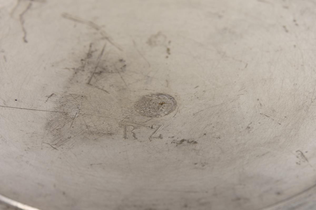 Schüssel undeutliche Wappenpunze, Kannen je "I. A. Hohenner Wunsiedel" gemarkt.