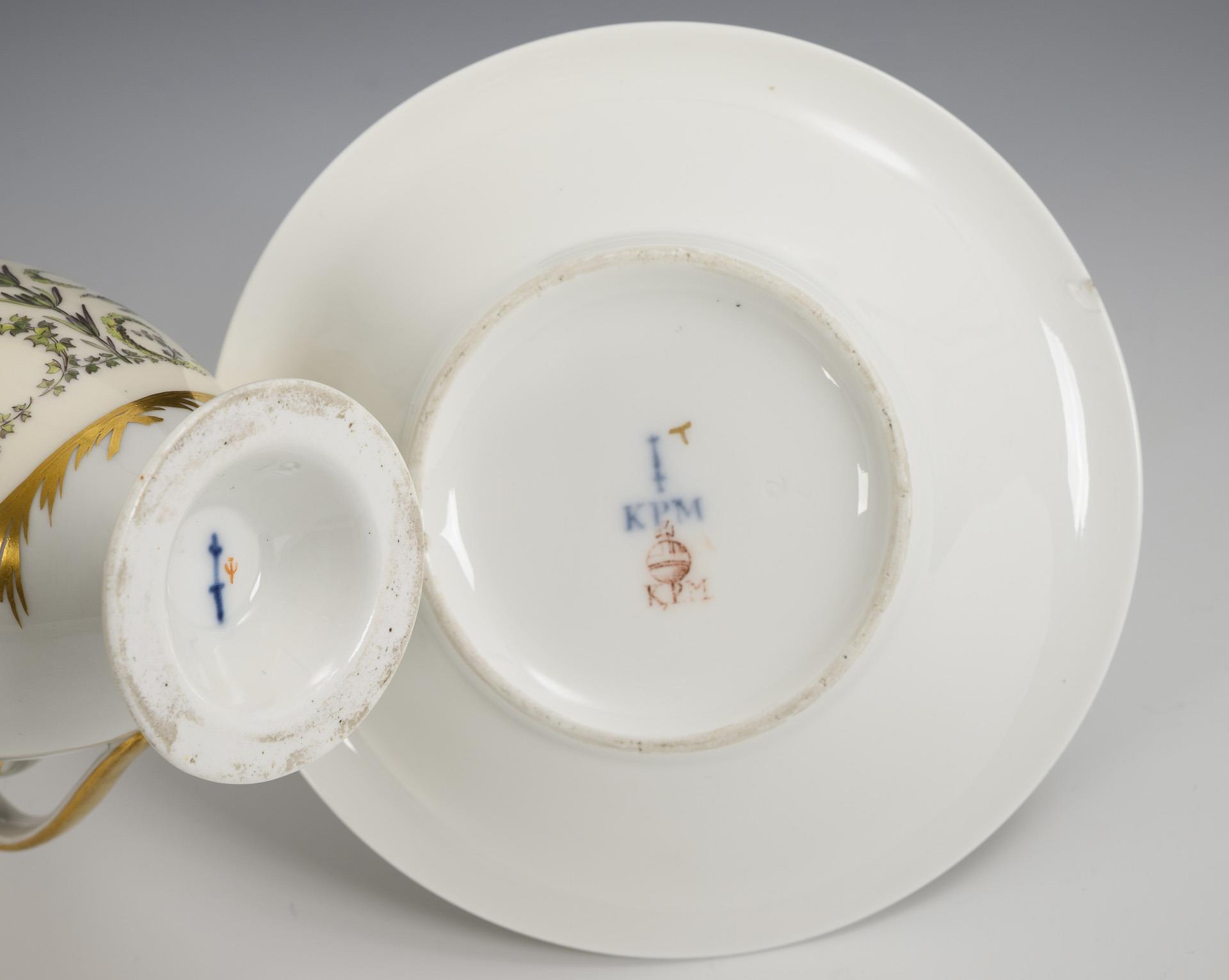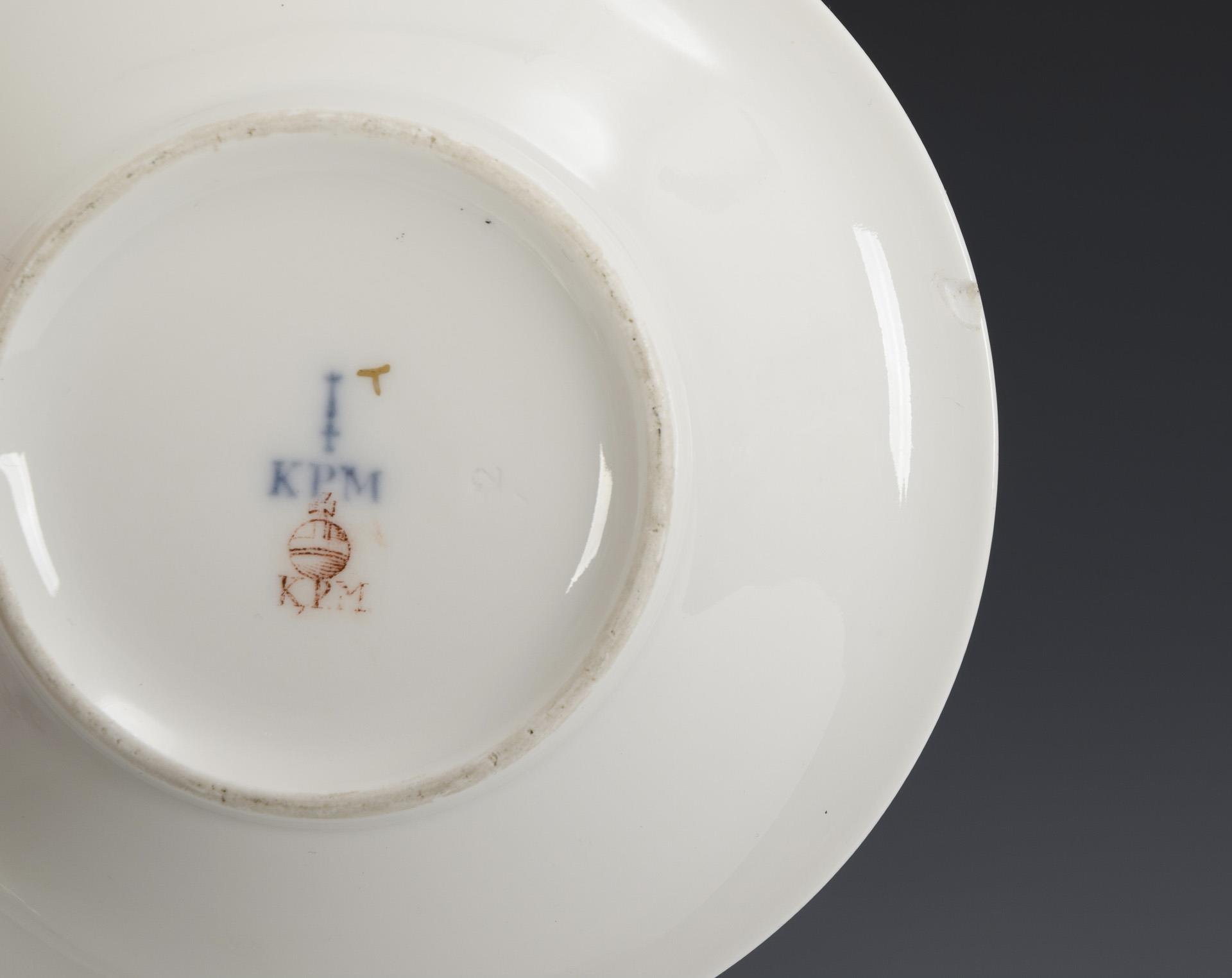 Footed bell-shaped cup with campander handle. On the front in a gold-framed oval medallion the year "1813" painted in laurel, ivy and oak, gilded inside. Minimal gold wear to the rim.