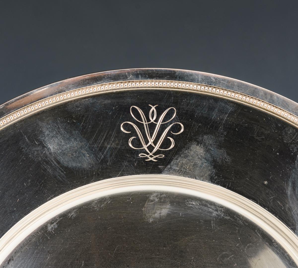12 schwere silberne Platzteller in Schatulle.