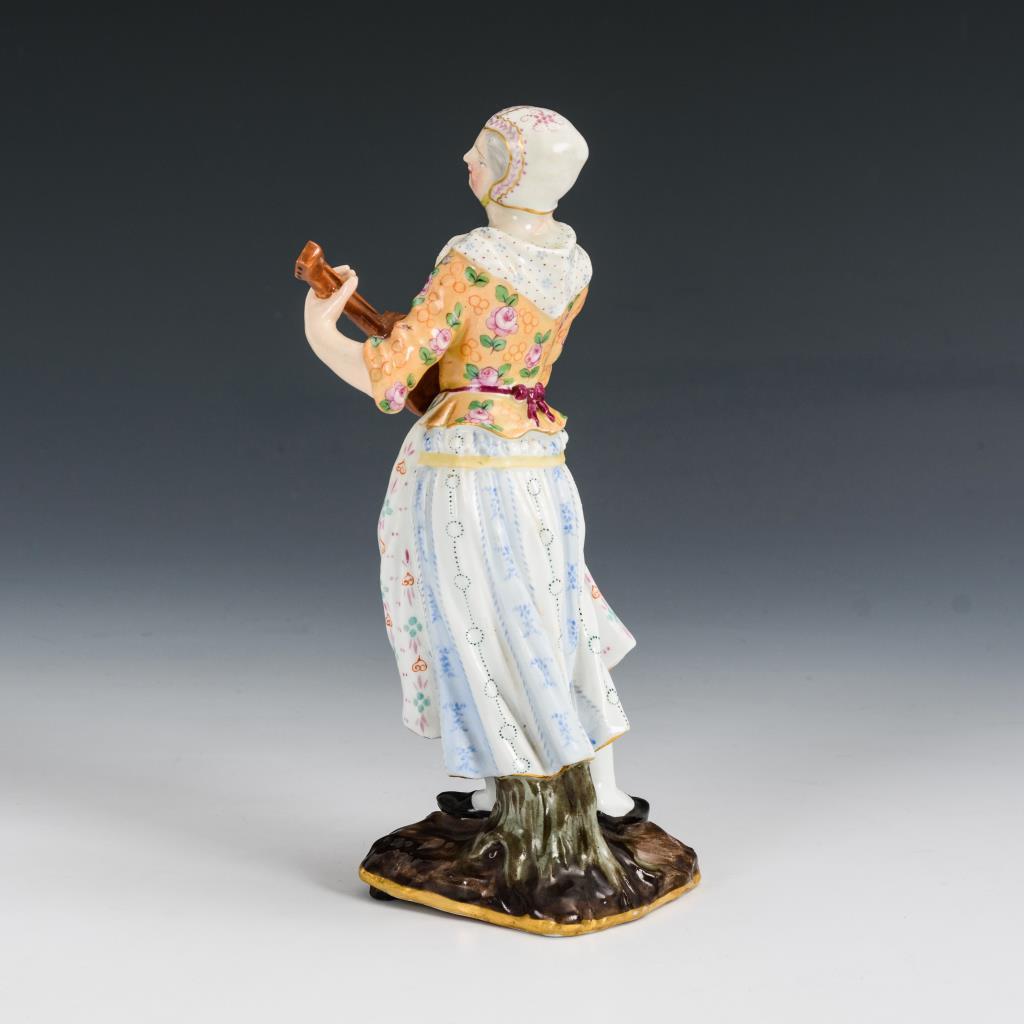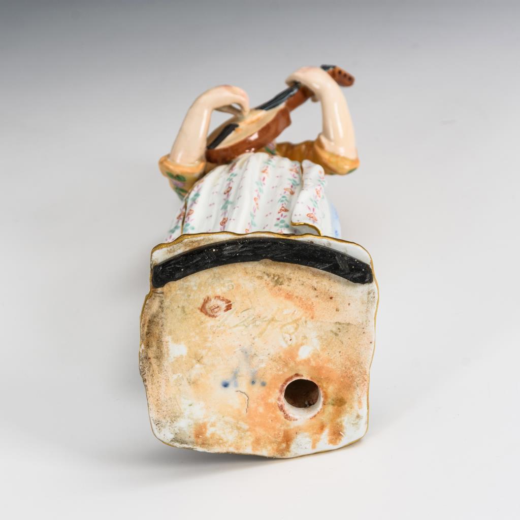 Polychrom bemalt, goldstaffiert.H 17 cm.
