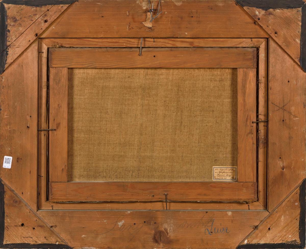 Links unten signiert, verso auf altem Klebezettel bezeichnet.