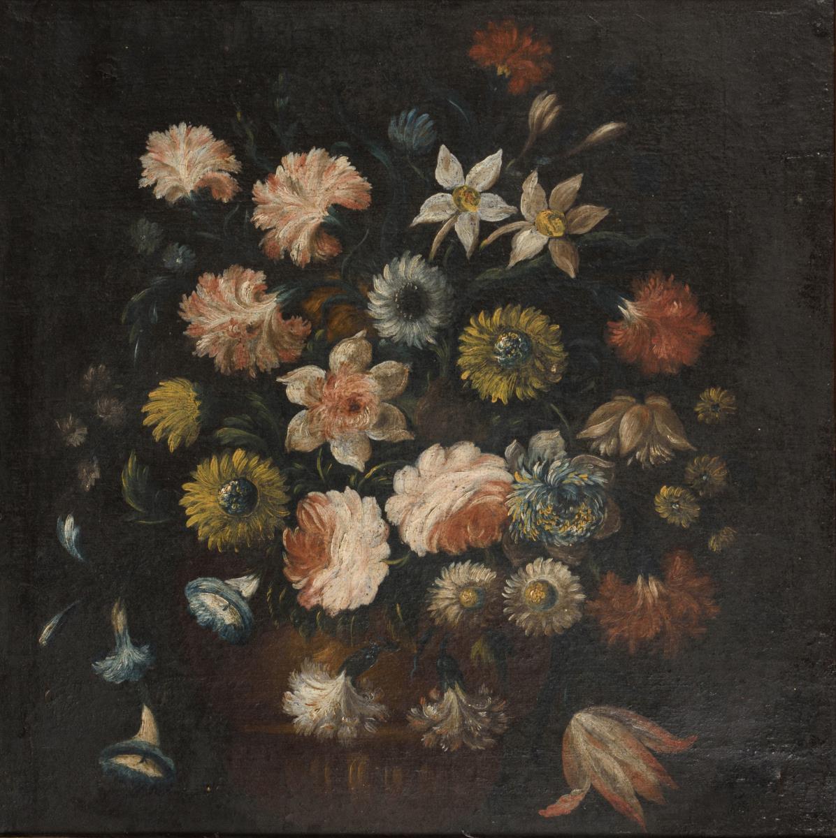 Leinwand doubliert, reinigungsbedürftig.
