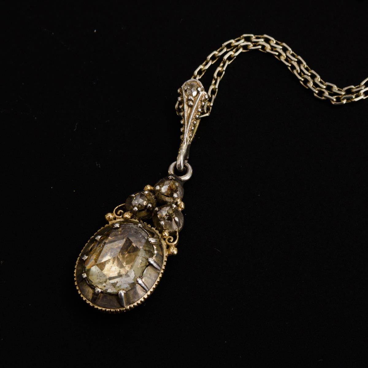 Anhänger 2 x 1 cm. Stein 0,9 x 0,7 cm. Getöntes Weiß/PI. Kette L 48 cm.