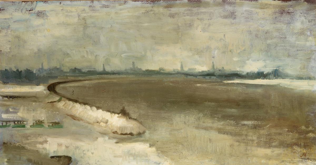 Monogrammist "N": Küstenstreifen mit Stadtsilhouette im Winter