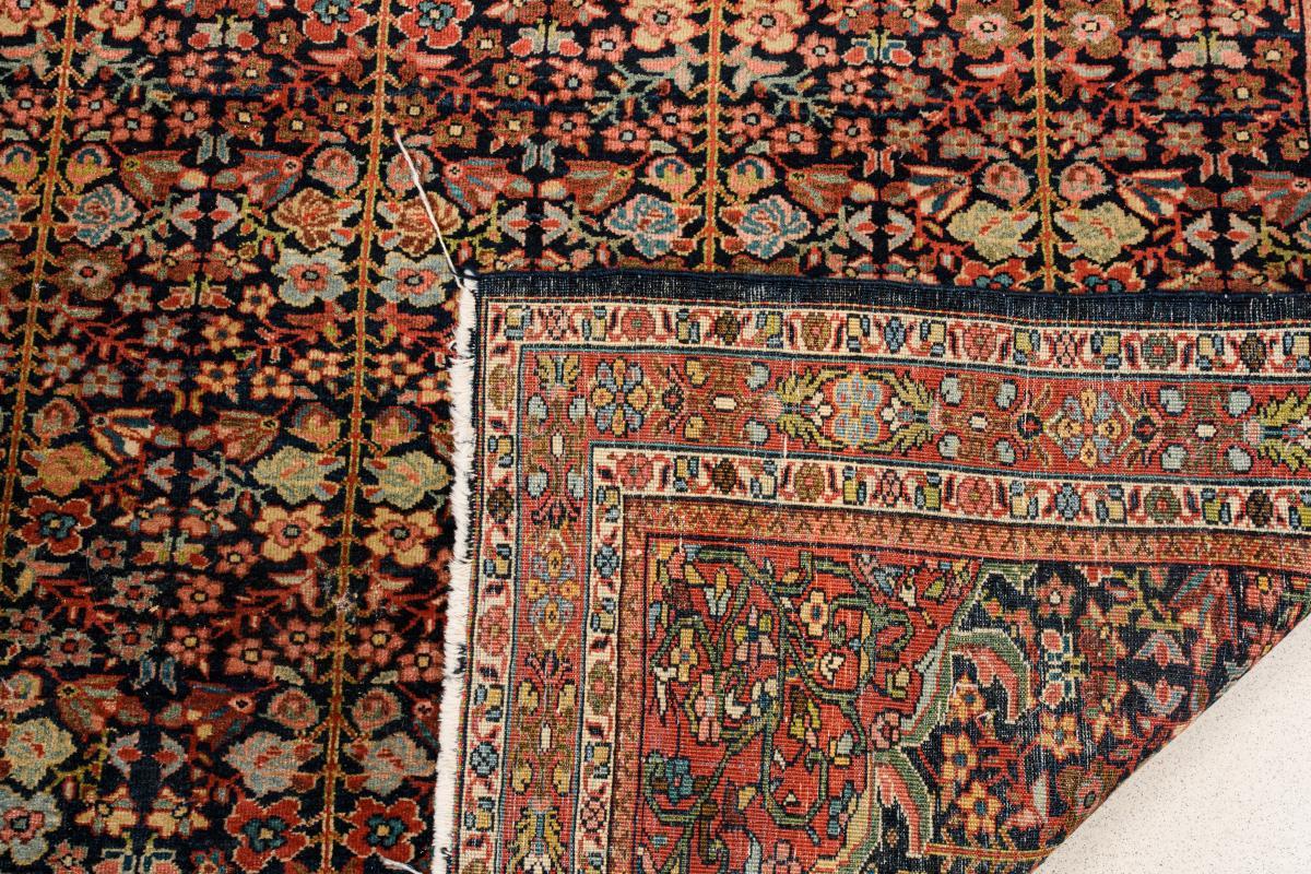 Gebrauchsspuren und Mottenschäden am Flor, leichte Defekte an Kanten sowie an den Schmalseiten mit Fransen.