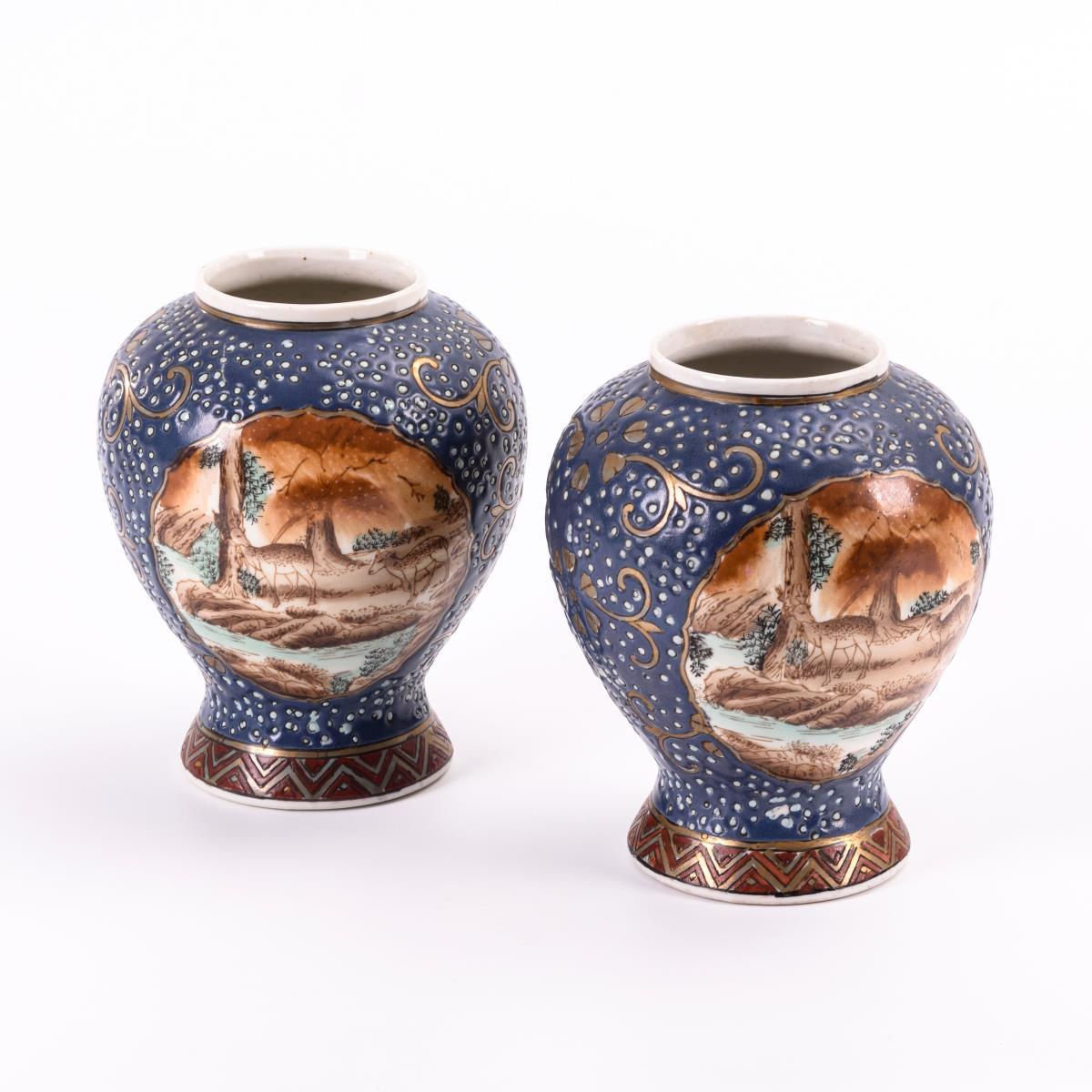 Paar Porzellanvasen mit Bildkartuschen.