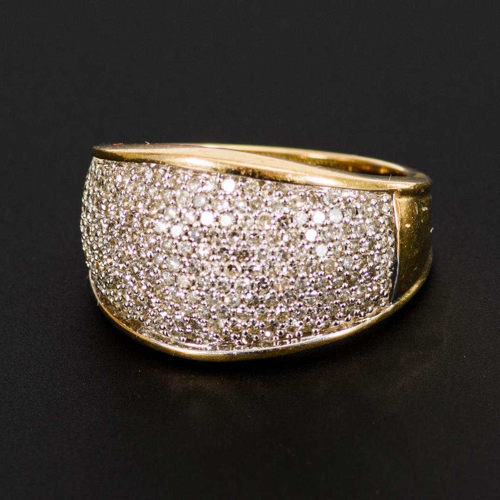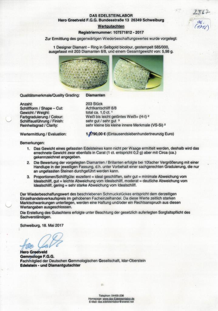 Breite Verlaufschiene mit 203 pavégefassten Diamanten.