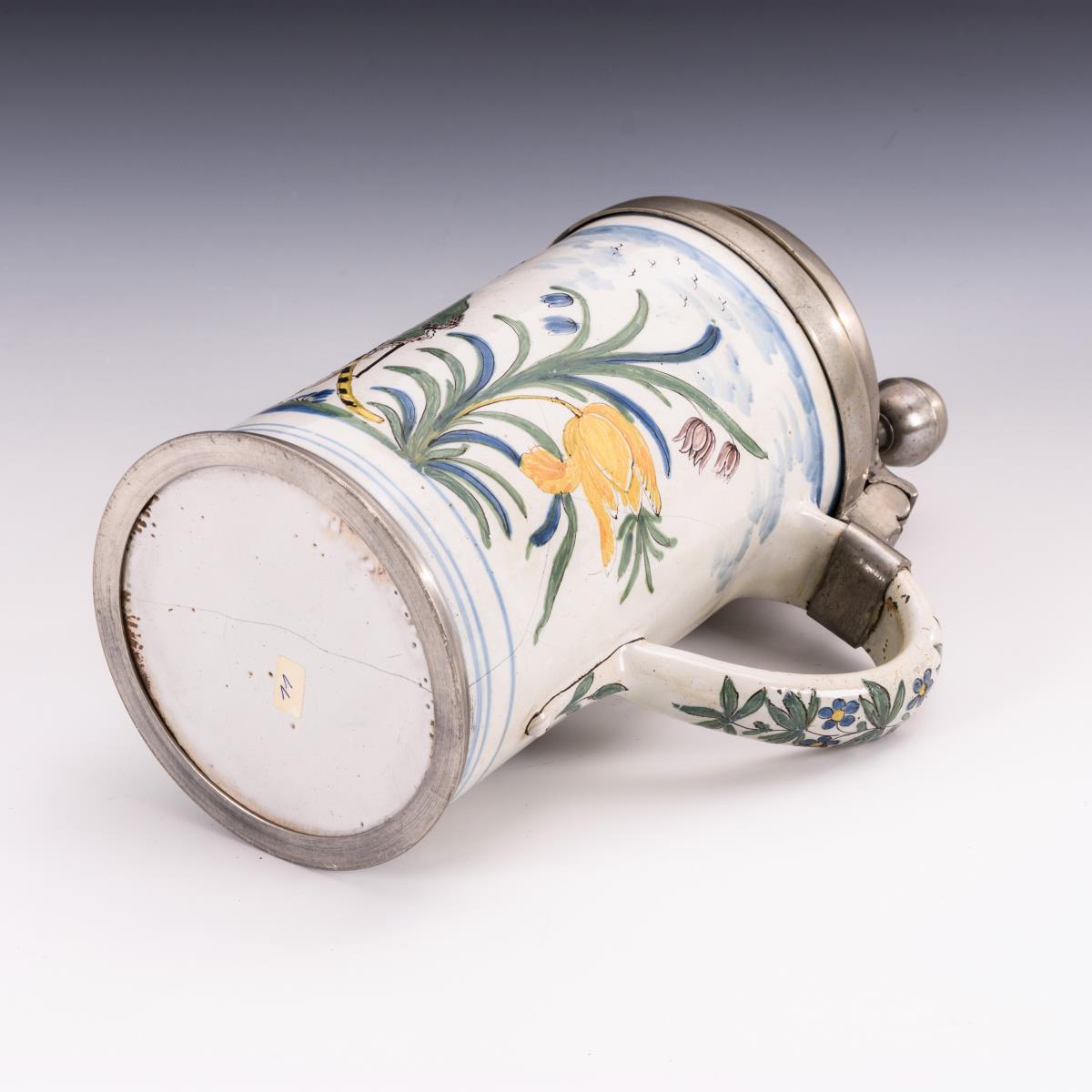 Weiß glasiert, polychrome Bemalung in Blau, Grün, Mangan und Gelb.