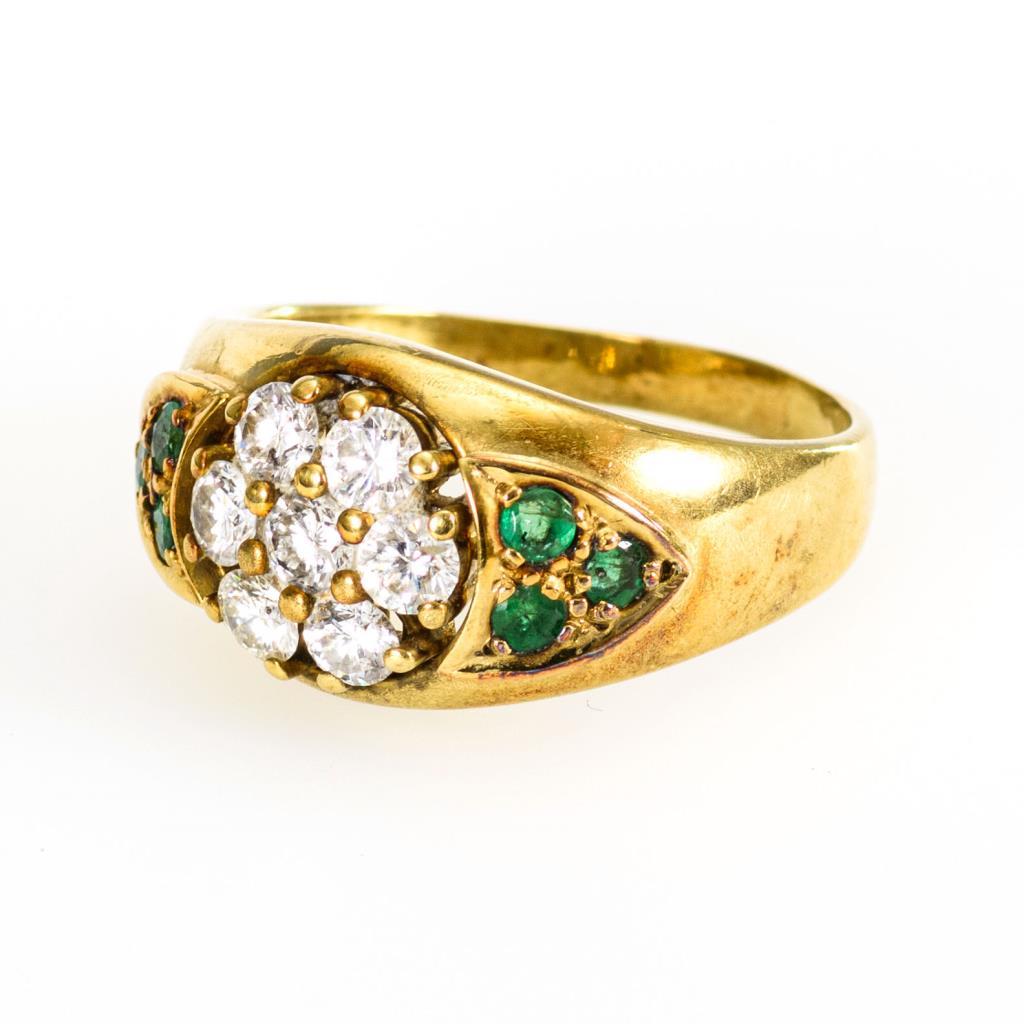 585 GG.Rg 61, Brillanten zus. ca. 1,00 ct/G-H/vs-si, Smaragde zus. ca. 0,24 ct.8,6 g.