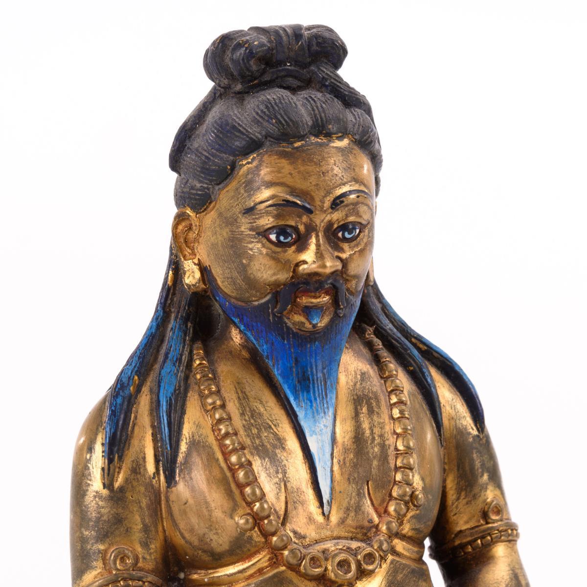 Feuervergoldete Bronze, schwarzes Haar, blauer Bart und Gesicht bemalt.