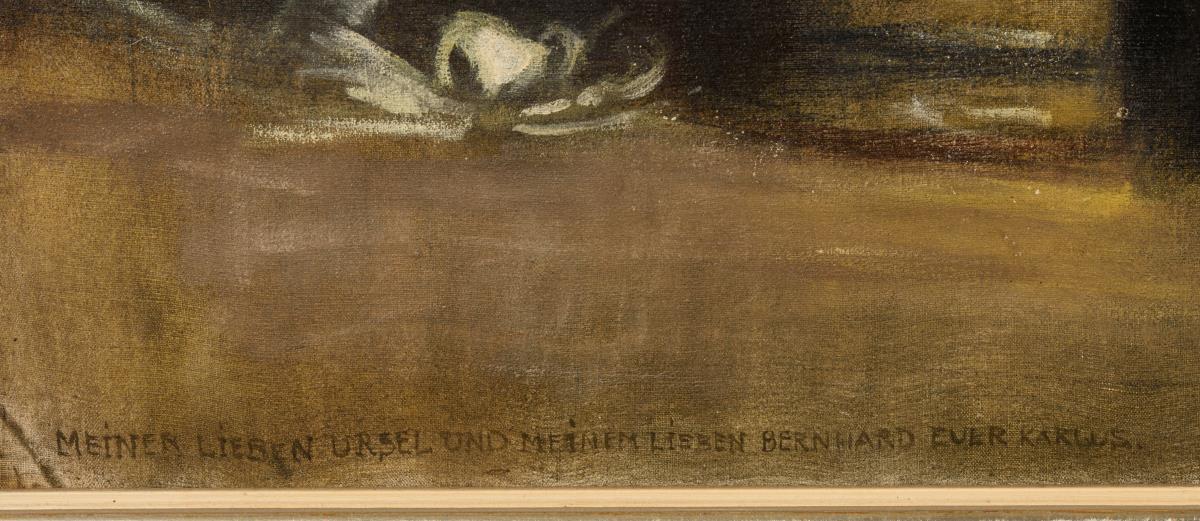Links unten signiert mit Widmung "Meiner lieben Ursel und meinem lieben Bernhard Euer Karlus", verso auf Keilrahmen bezeichnet.