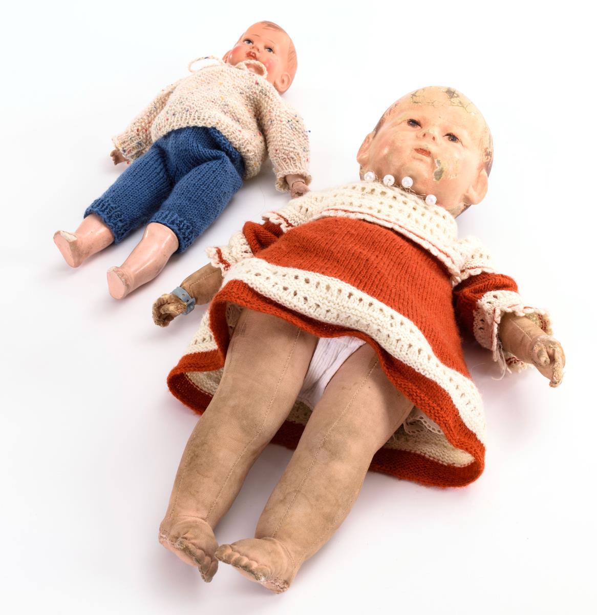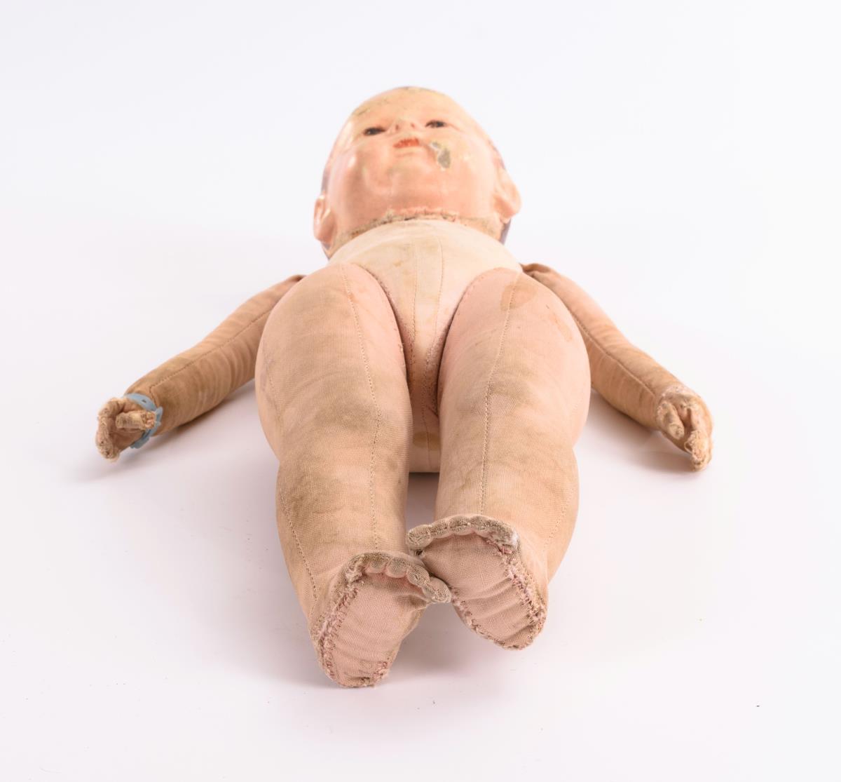 Frühe Käthe-Kruse-Puppe, Puppenjunge Bruno Schmidt + Kleidung.