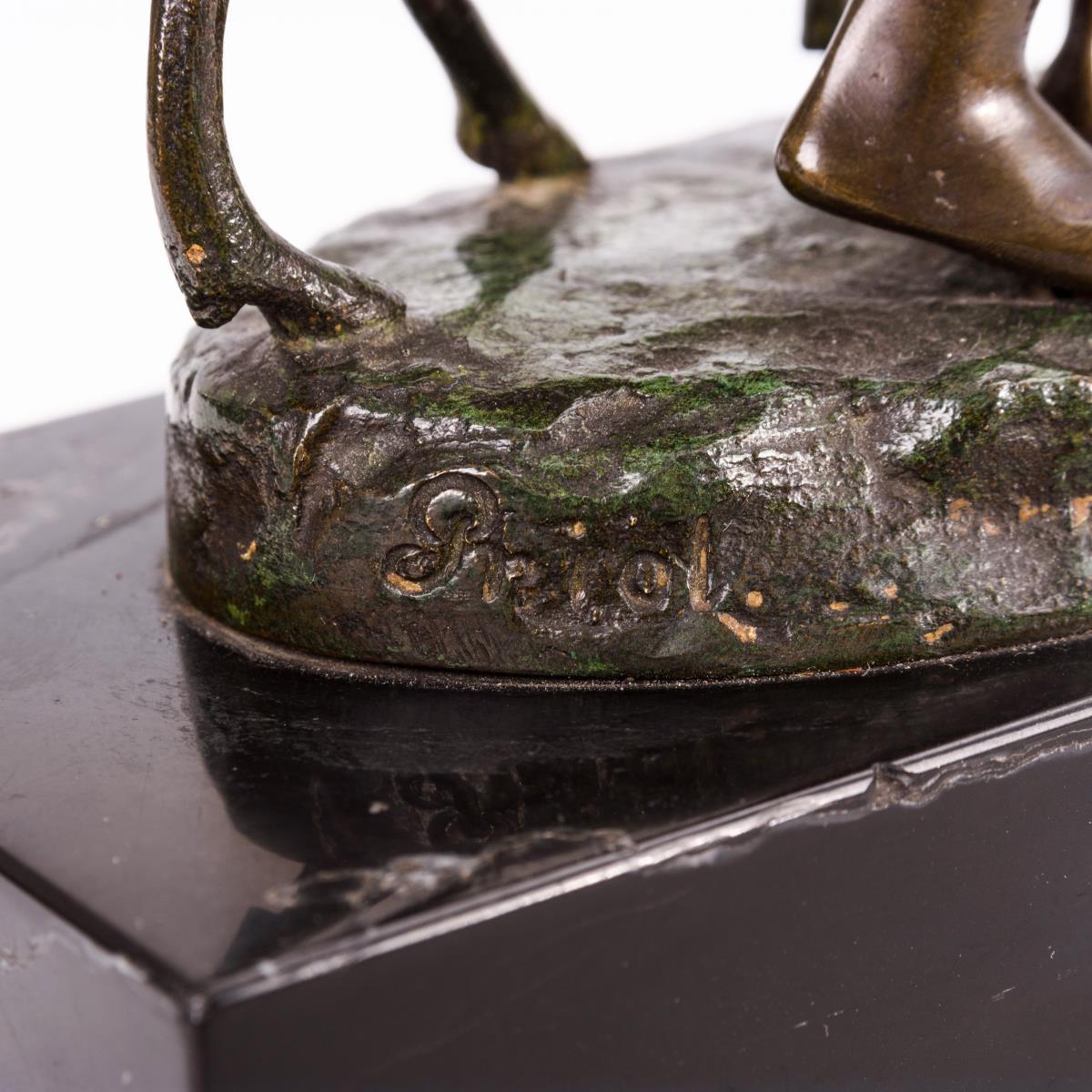 Bronze zweifarbig patiniert, schwarzer Marmor-Sockel.