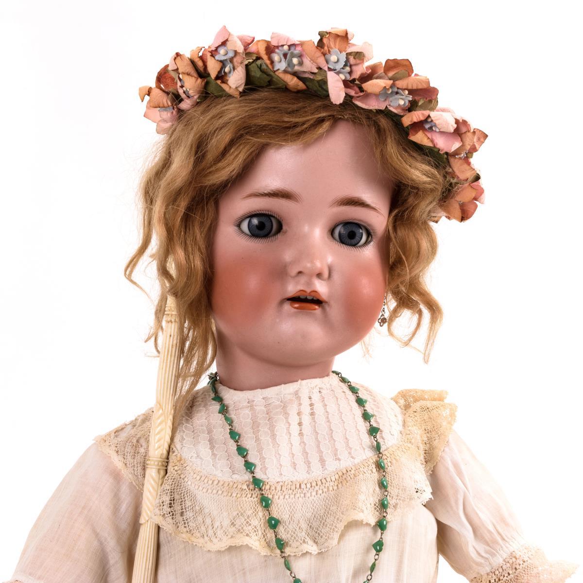 Große Mädchenpuppe mit Schirm.