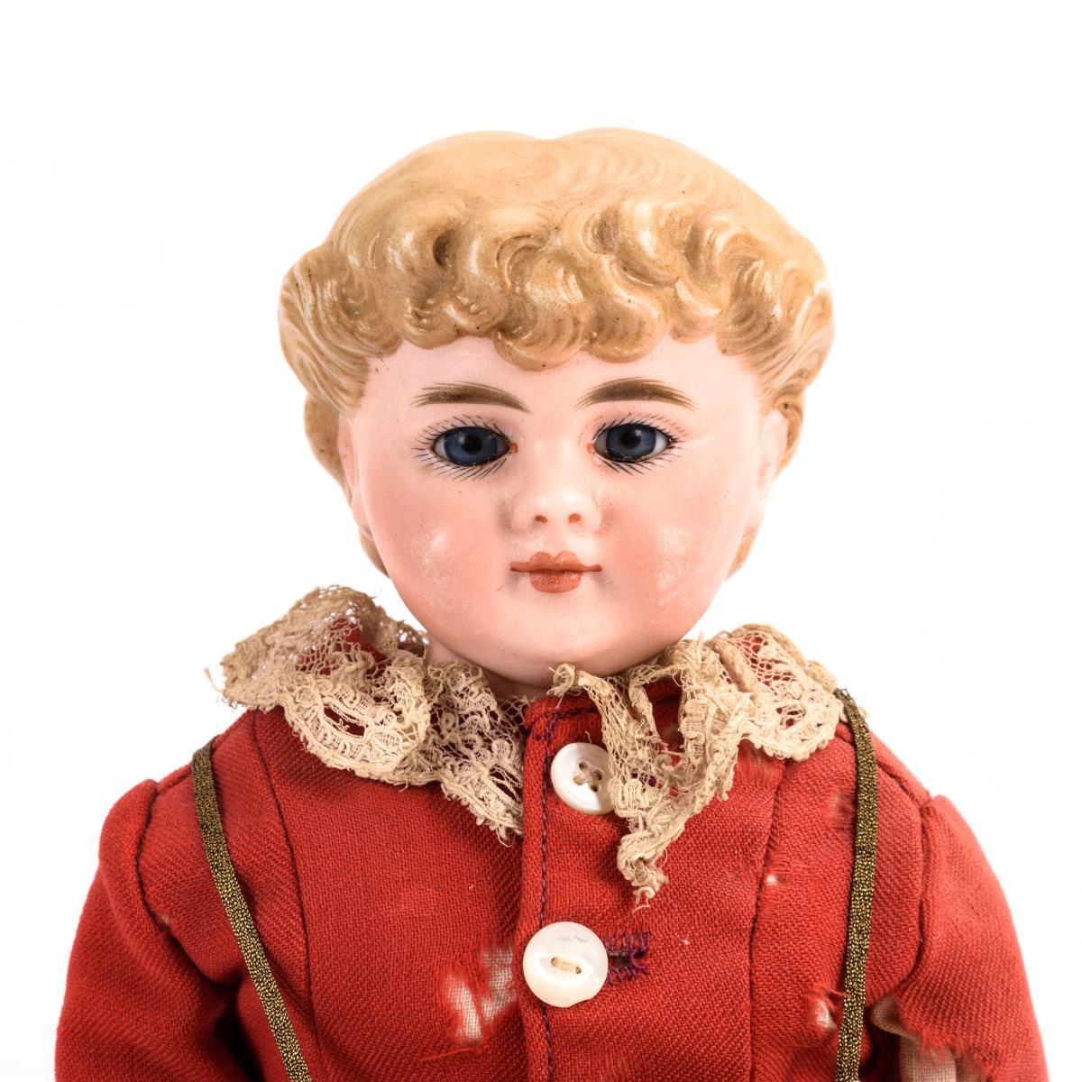 Gesichts- und Haarbemalung minimal berieben, 2 winzige Chips an der Rückenplatte. Körper rieselt, mit Reparaturen, Hände bestoßen.