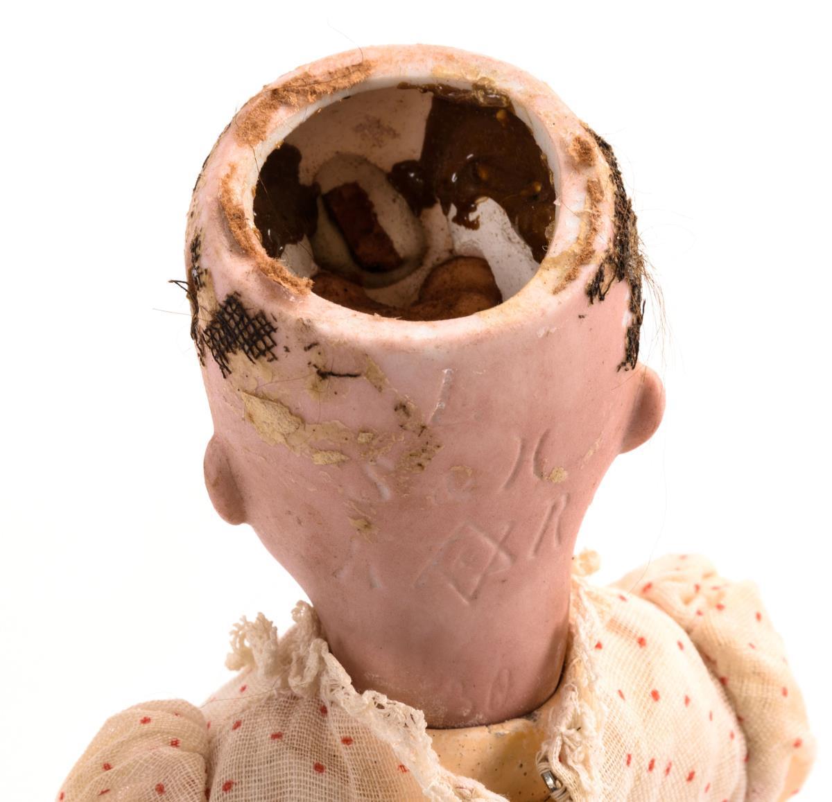 Kopf durchleuchtet: ohne Defekte, lediglich 1 kleiner Chip (Perückenpull) an der Kopfkrone.