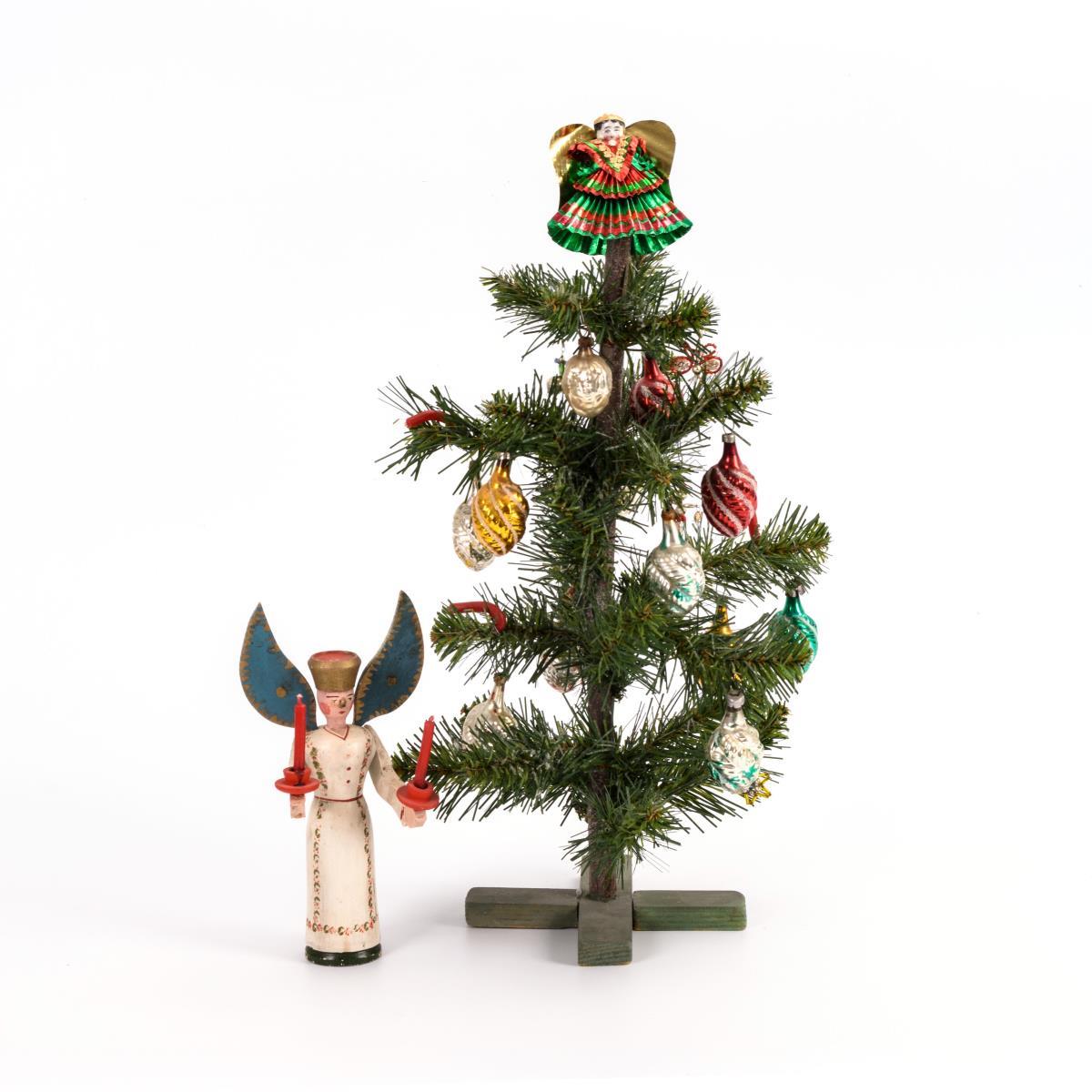 Weihnachtsbaum mit altem Glasbehang + Engel.