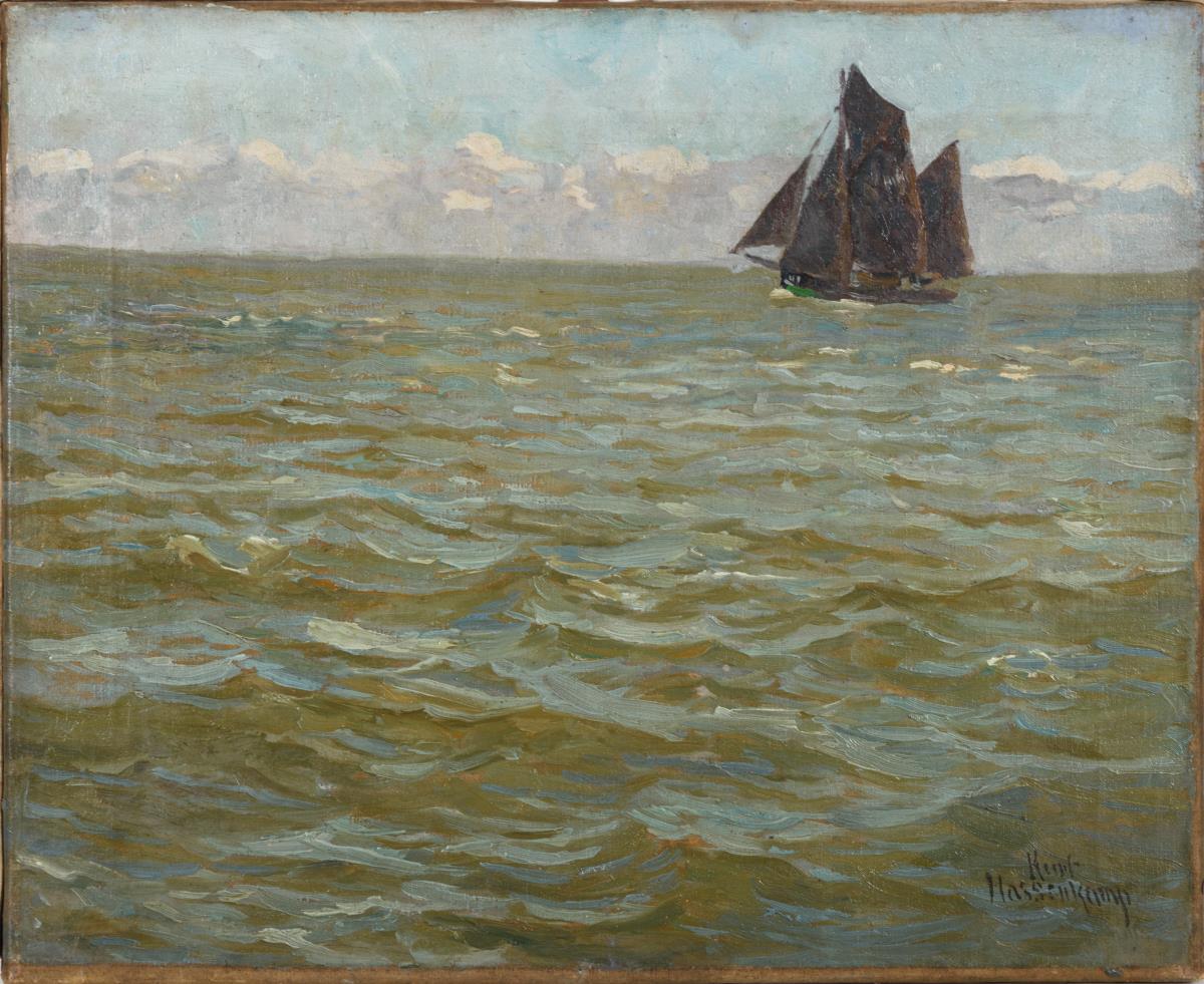 Rechts unten signiert, verso undeutlich "... in der Ostsee" betitelt.