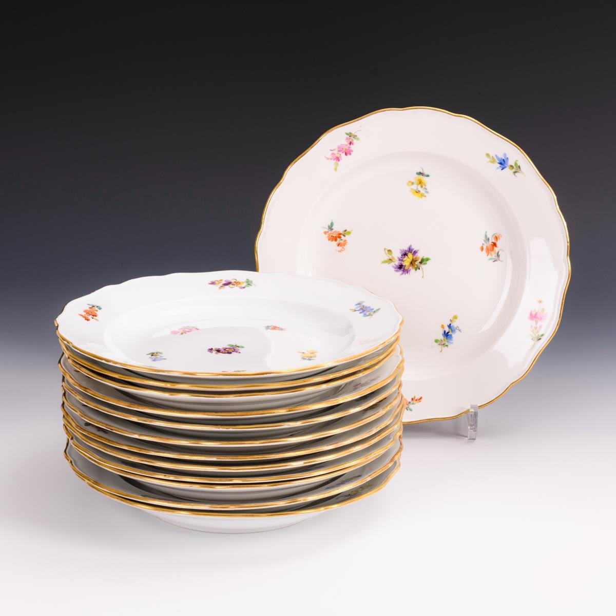 13 Speiseteller mit Streublümchenmalerei.