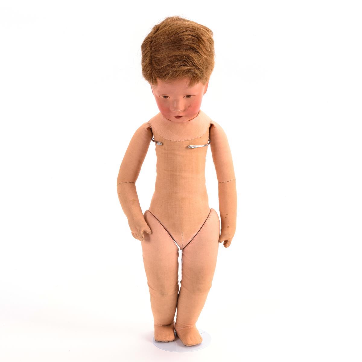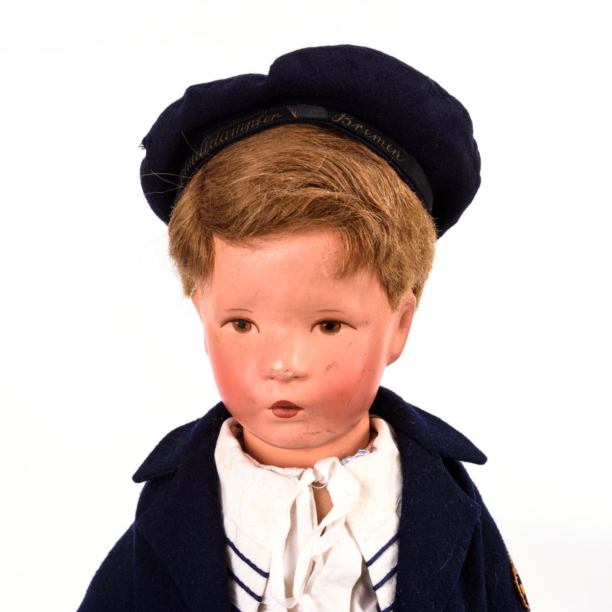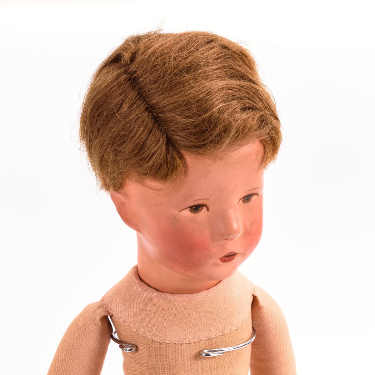 Wangenrötung eventuell aufgefrischt, Nasenspitze minimal berieben, Perücke gelöst, Körper partiell fleckig.