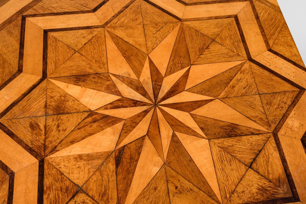 Biedermeier-Salontisch mit Sternintarsie.