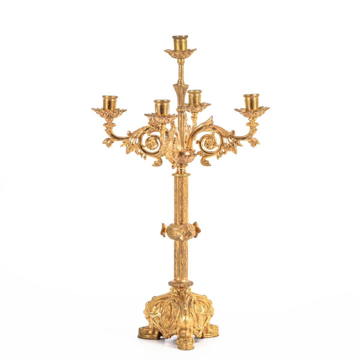 5-flammiger Kerzenleuchter im Stil der Romanik.