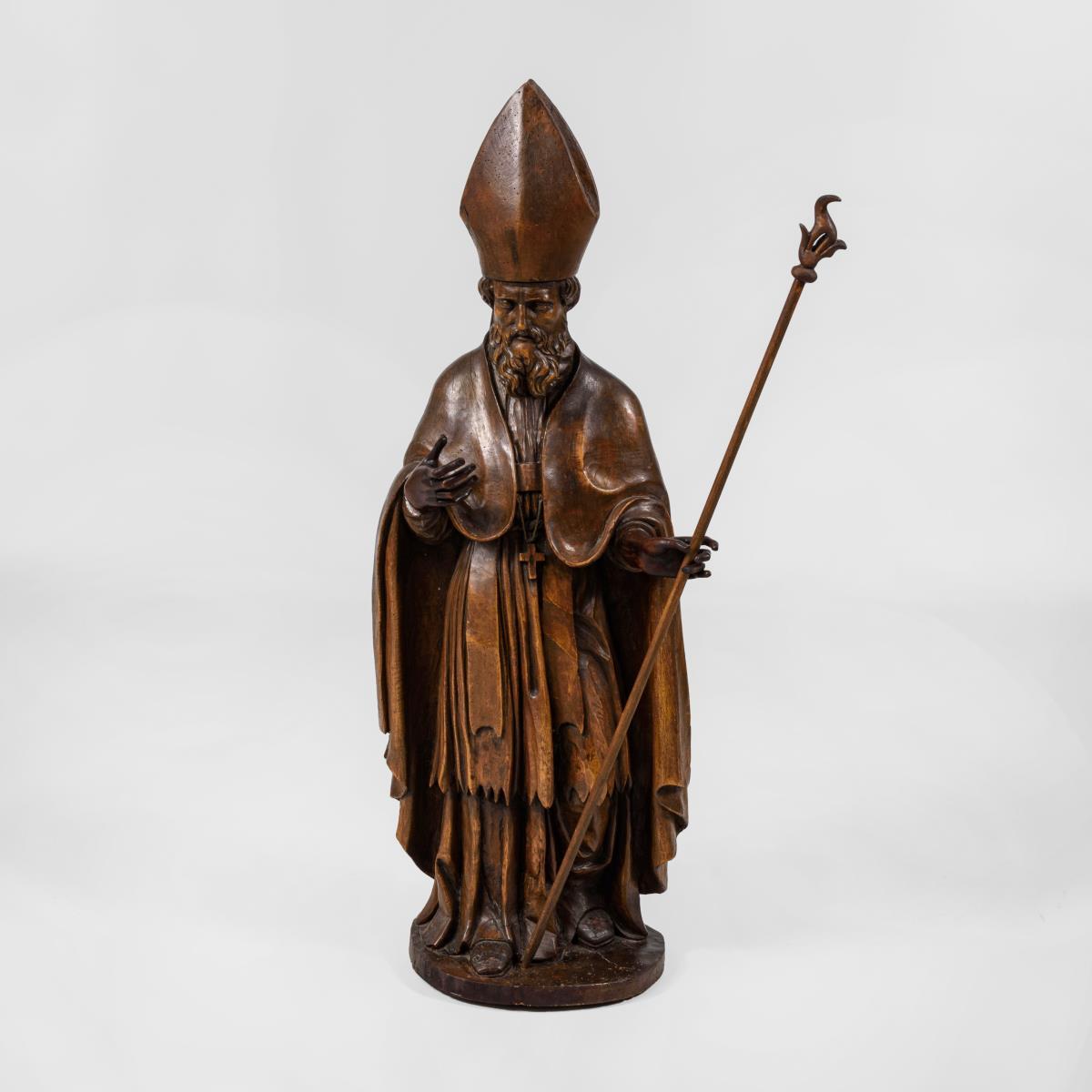 Große Bischof-Figur auf hohem Postament