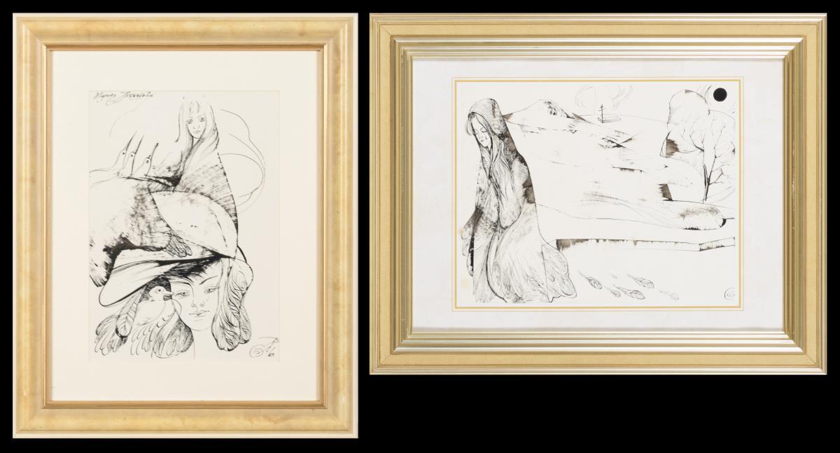 2 Tuschzeichnungen.
