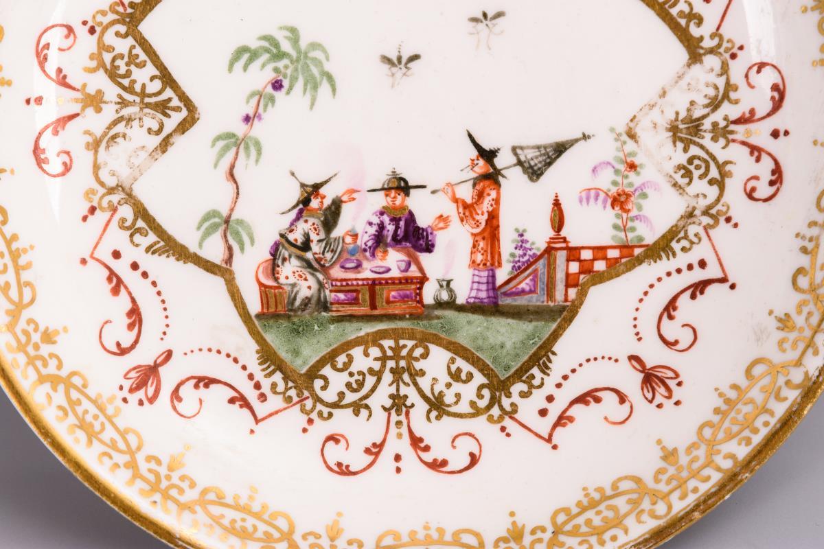 Barocke Untertasse mit Chinoiseriemalerei.