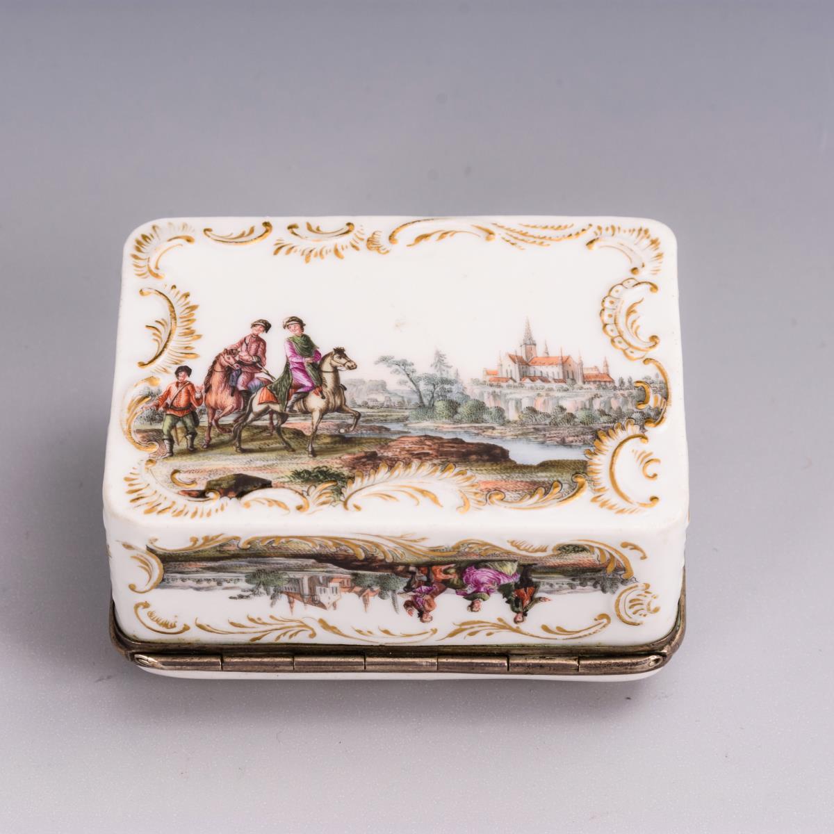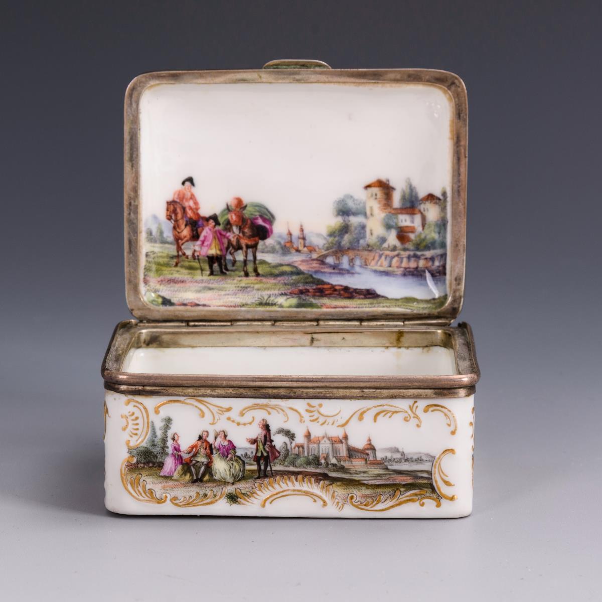 Polychrom bemalt, goldstaffiert, Silbermontierung.