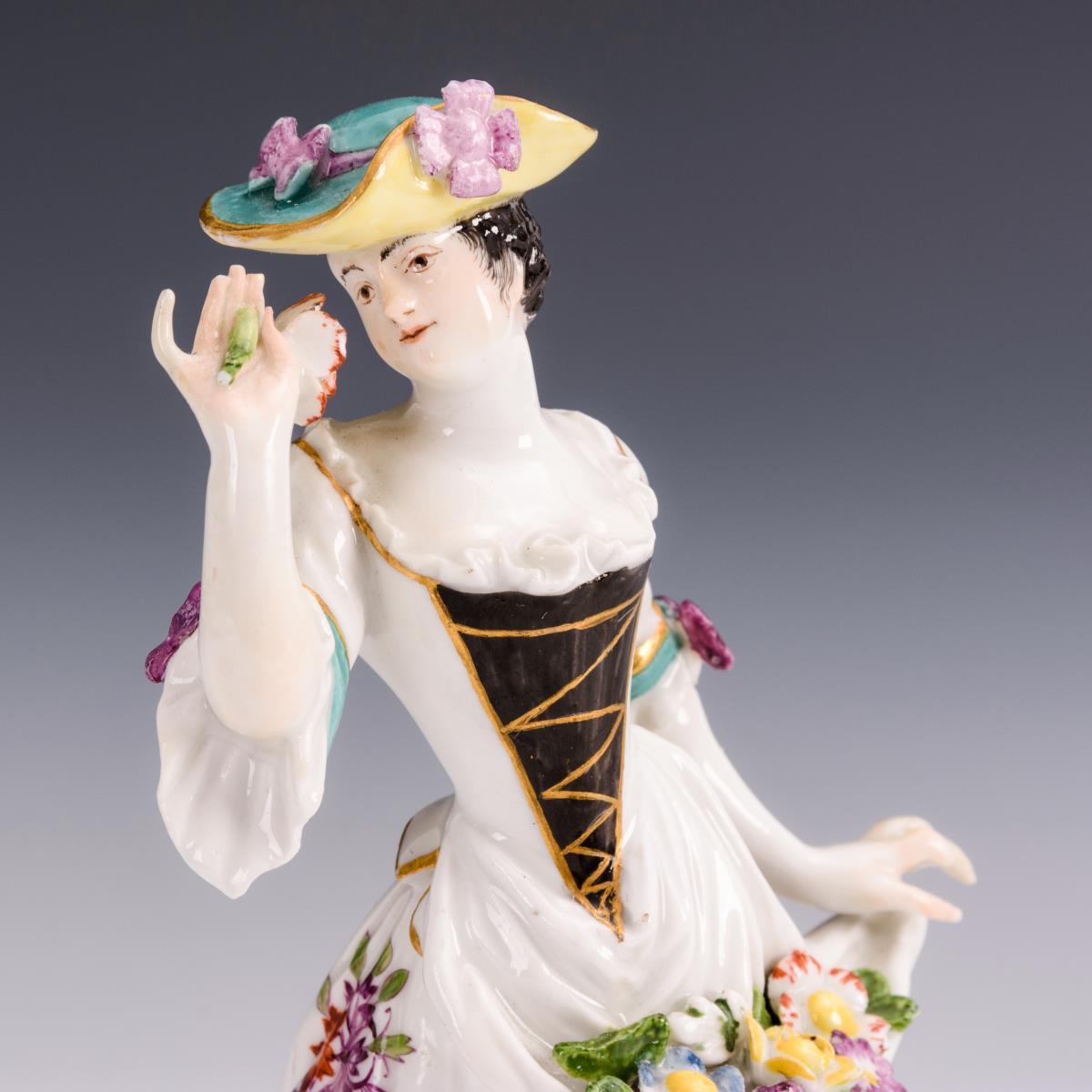 Linke Hand und Zeigefinger der rechten Hand restauriert, partiell kleine Bestoßungen an den Blüten.