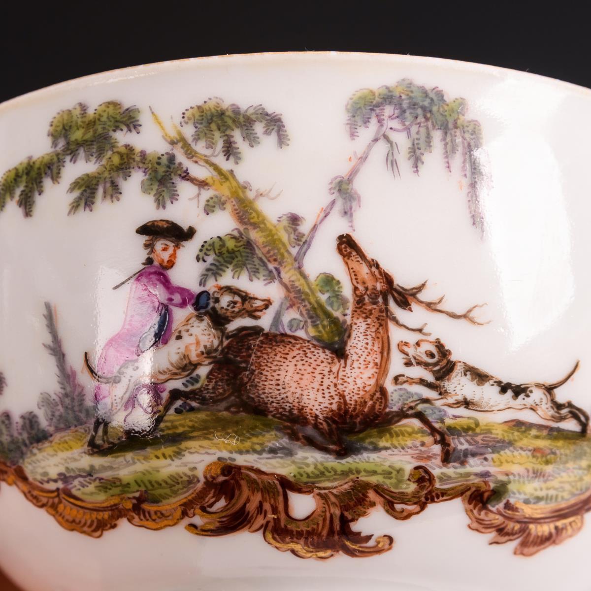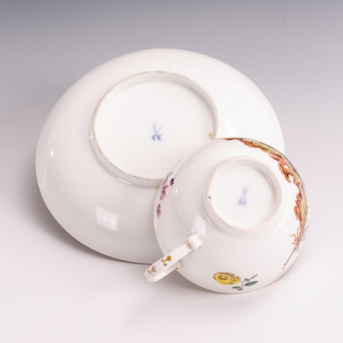 Partieller Goldabrieb, kleine Bestoßung am Standring der Tasse.