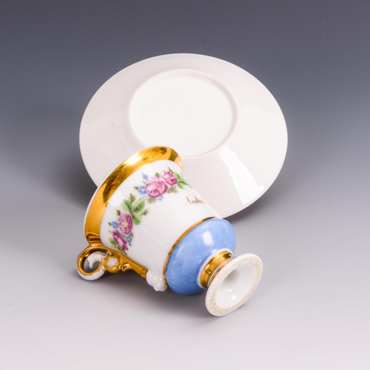 H Tasse 8,5 cm, Ø ergänzte Untertasse 12,5 cm.