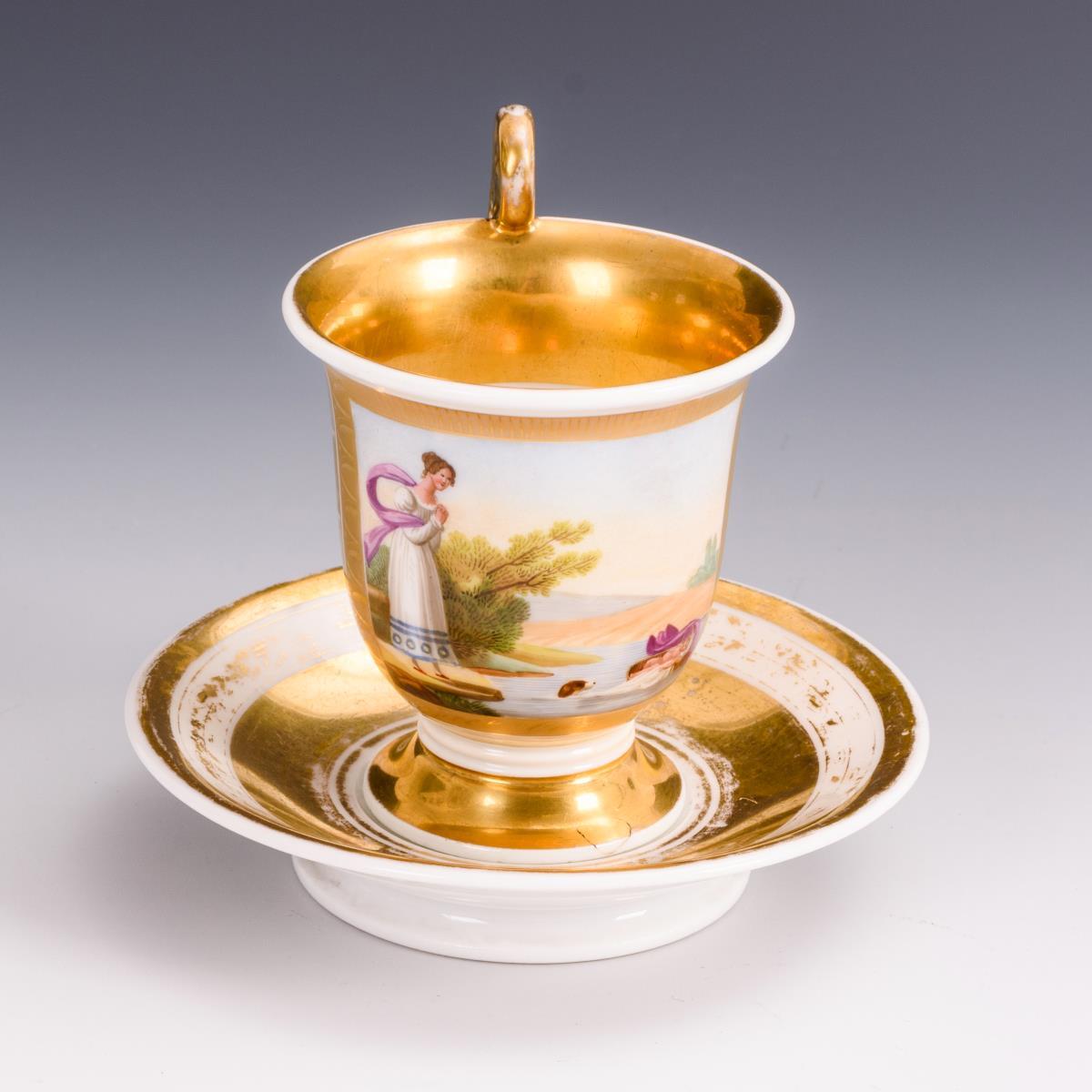 H Tasse 11 cm, Ø ergänzte Untertasse 13 cm.