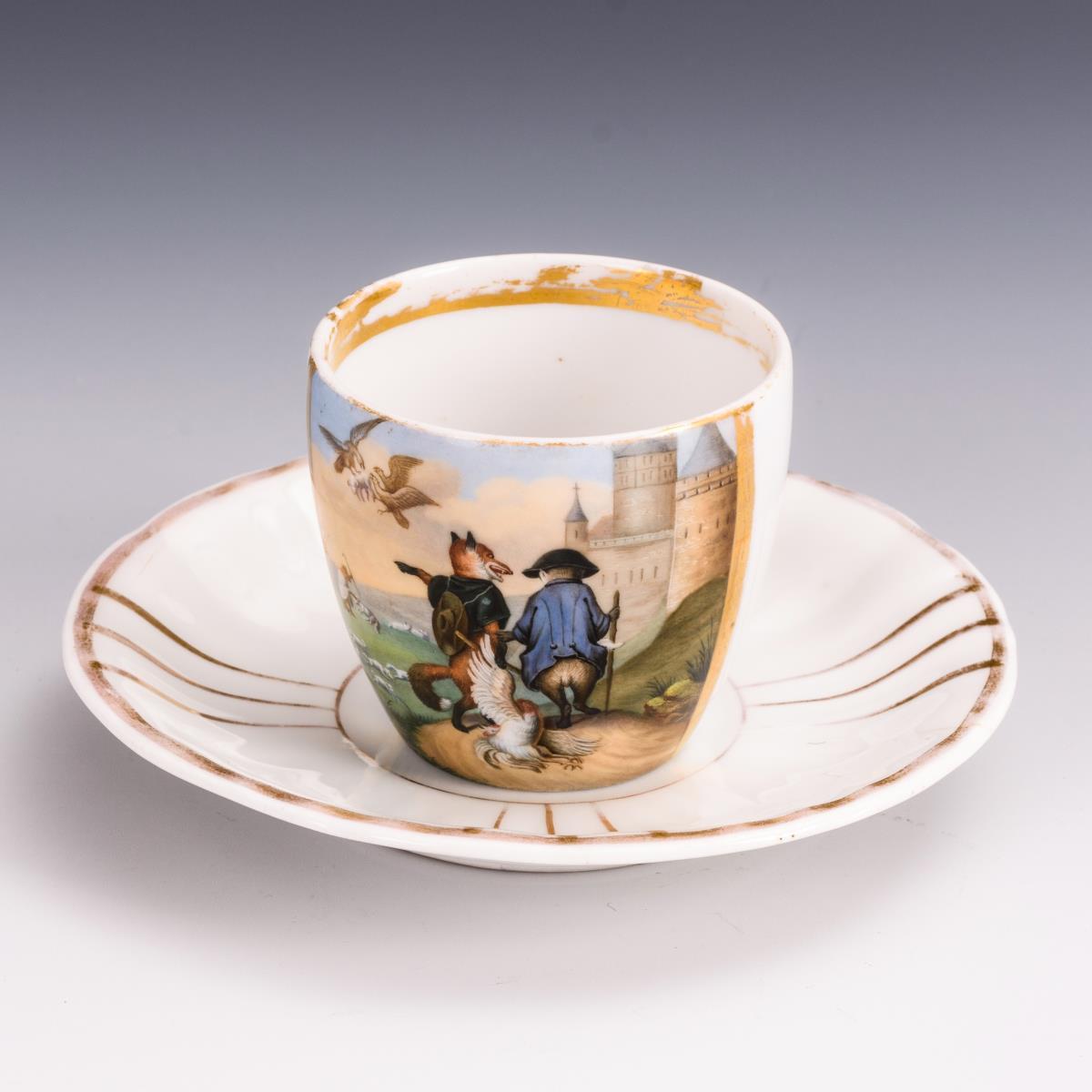 H Tasse 6,5 cm, Ø ergänzte Untertasse 14,5 cm.