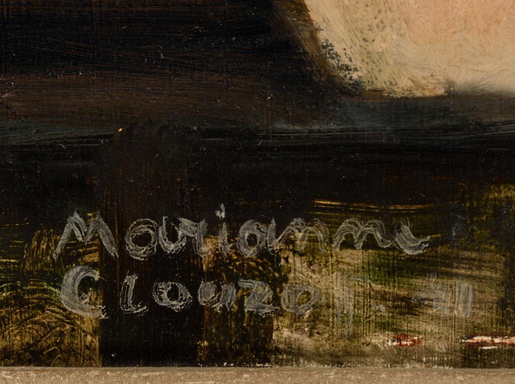 Öl/Sperrholz.Frankreich.Links unten signiert, verso auf altem Klebezettel bezeichnet/betitelt.
