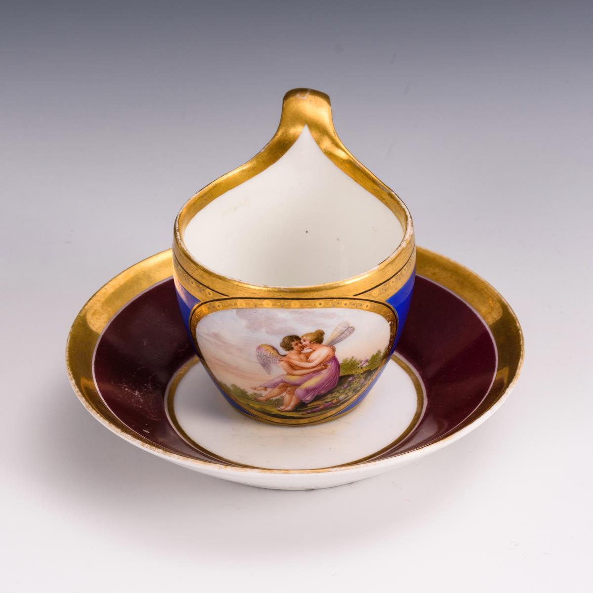 H Tasse 7,5 cm, Ø ergänzte Untertasse 13 cm.
