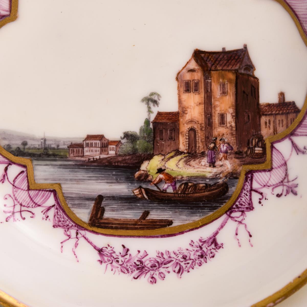 Barocke Untertasse mit Kauffahrteimalerei.