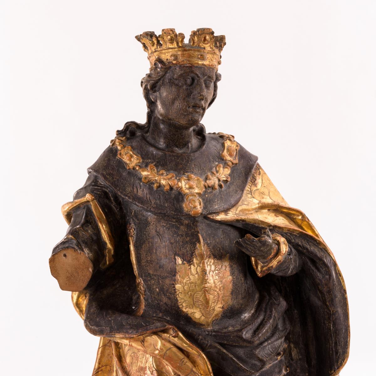 Weichholz polychrom gefasst und teils vergoldet.