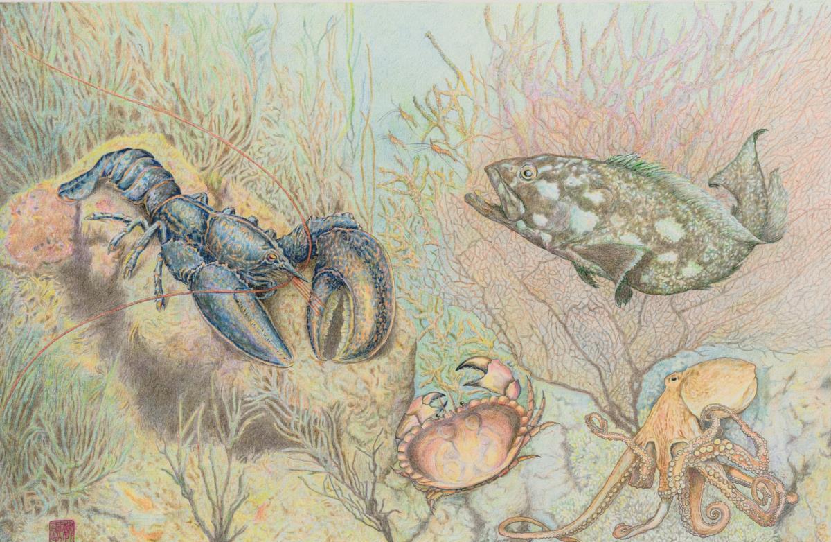 Asiatischer Künstler: Qualitätvolle Unterwasser-Zeichnung