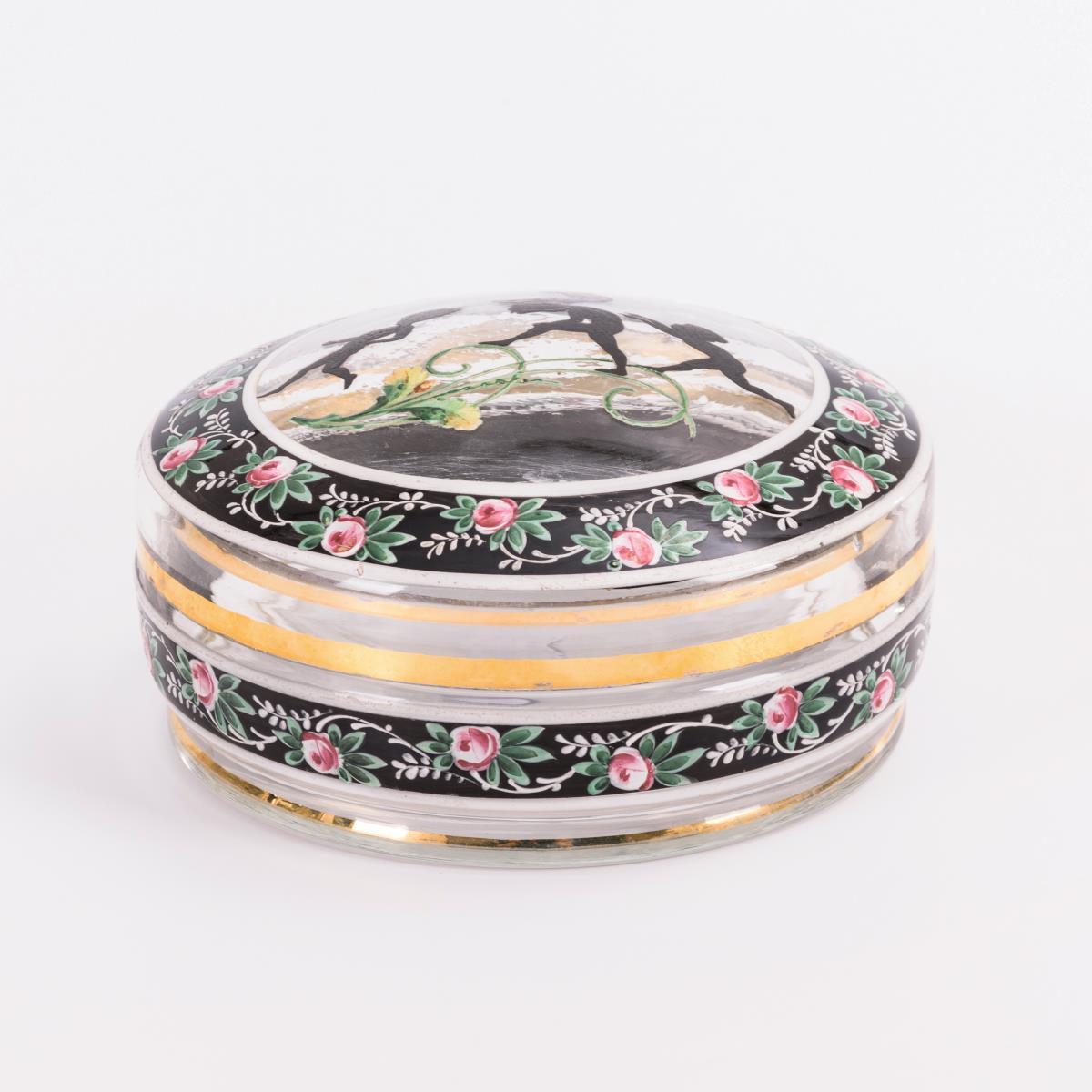 Dose mit Silhouettenmalerei. Steinschönau.