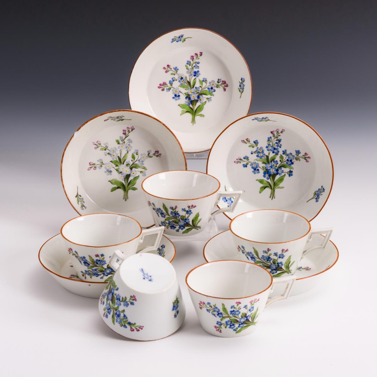 Minimale Randbereibungen, Chip an 1 Untertassenrand, Beschleifung an 1 Henkel.