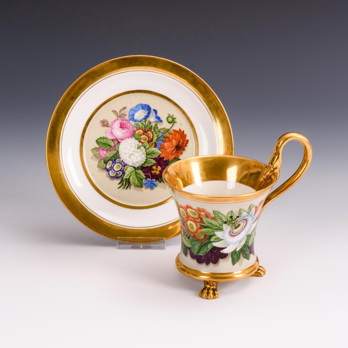 Vitrinentasse mit Blumenmalerei.