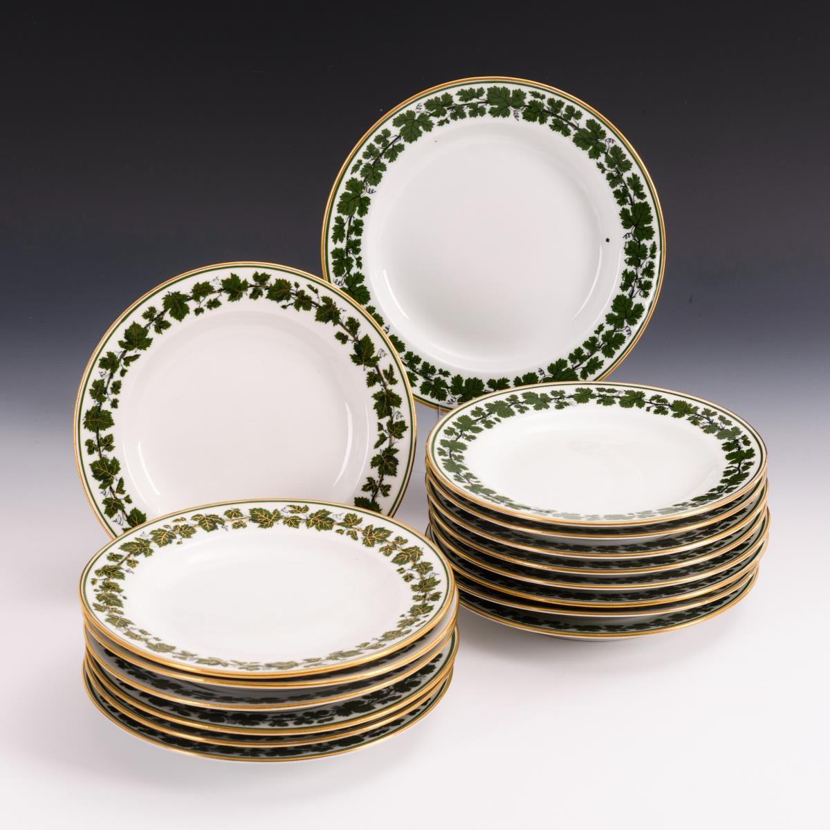 Unterglasurgrüne Malerei, Goldrand (2x mit goldgeädertem Weinlaub).