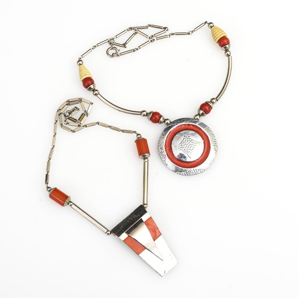 Metall, Galalith, Email. L 44/47 cm. 52,8 g.