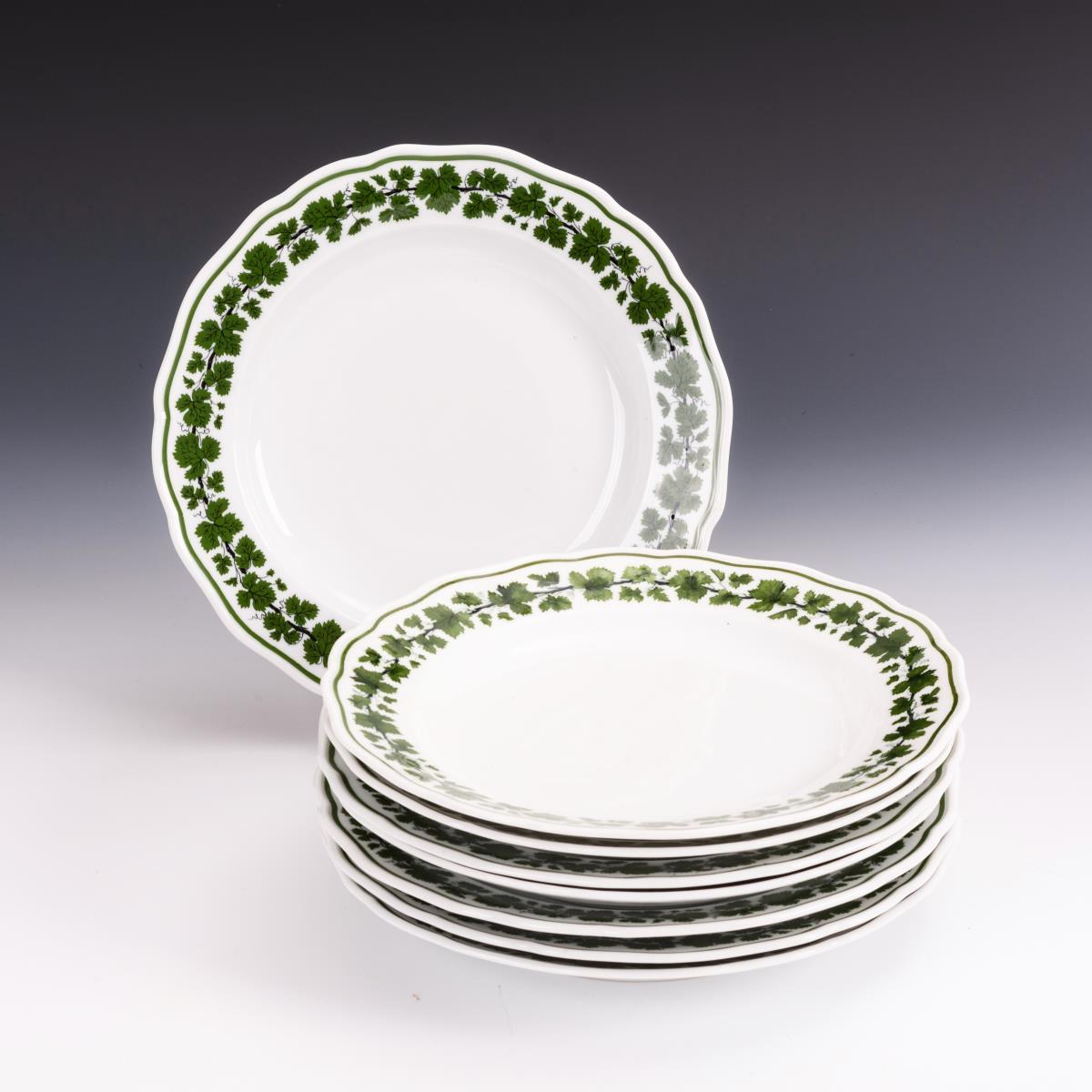 8 Speiseteller mit Weinlaubdekor.