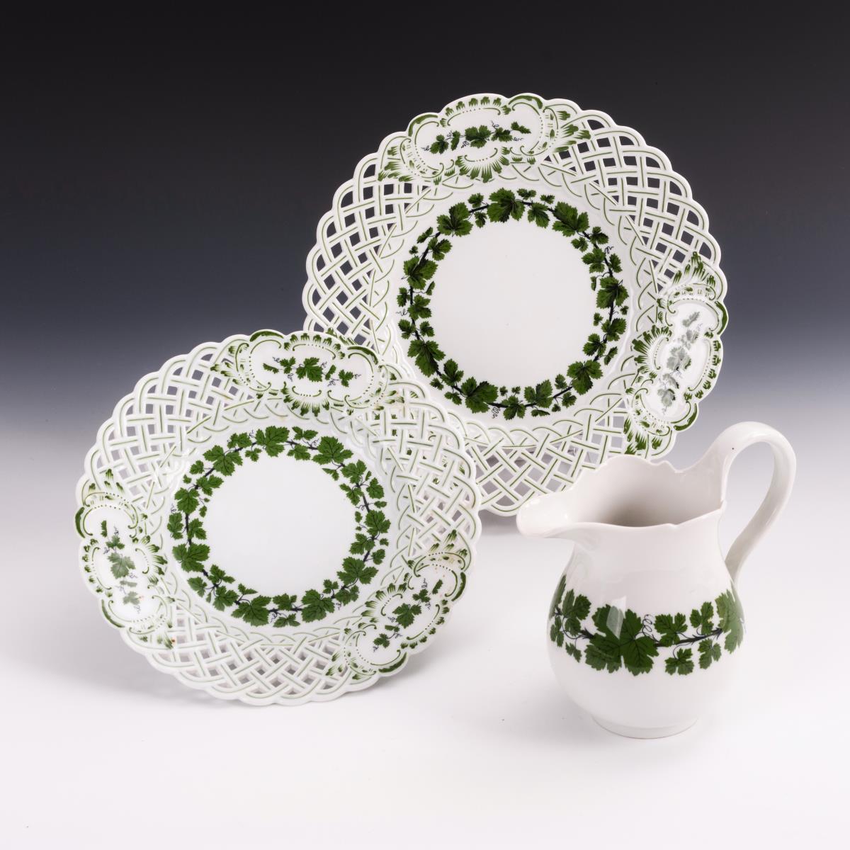 2 Durchbruchteller und 1 Kännchen mit Weinlaubdekor.